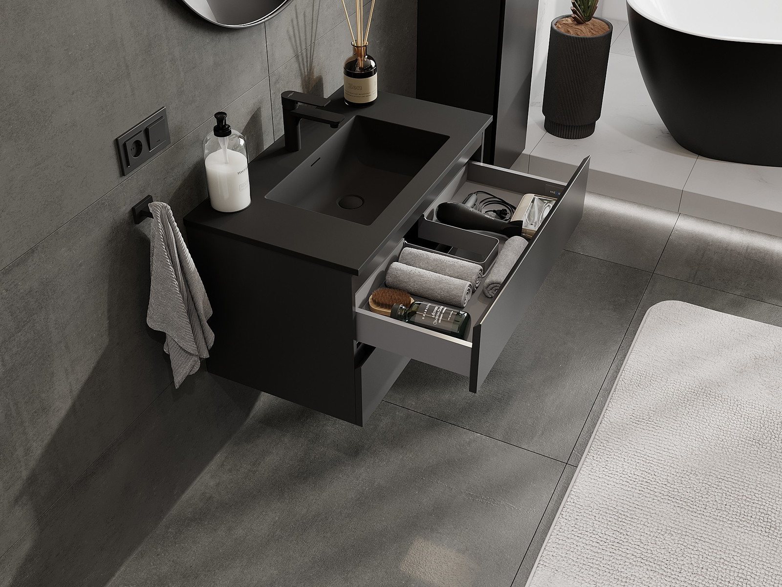 Mobilierul nostru modular pentru baie poate fi combinat în diverse configurații de culori, permițând personalizarea completă. Puteți alege atât aspectul, cât și funcțiile fiecărui element, ceea ce permite adaptarea mobilierului la preferințele dvs. stilistice și funcționale.