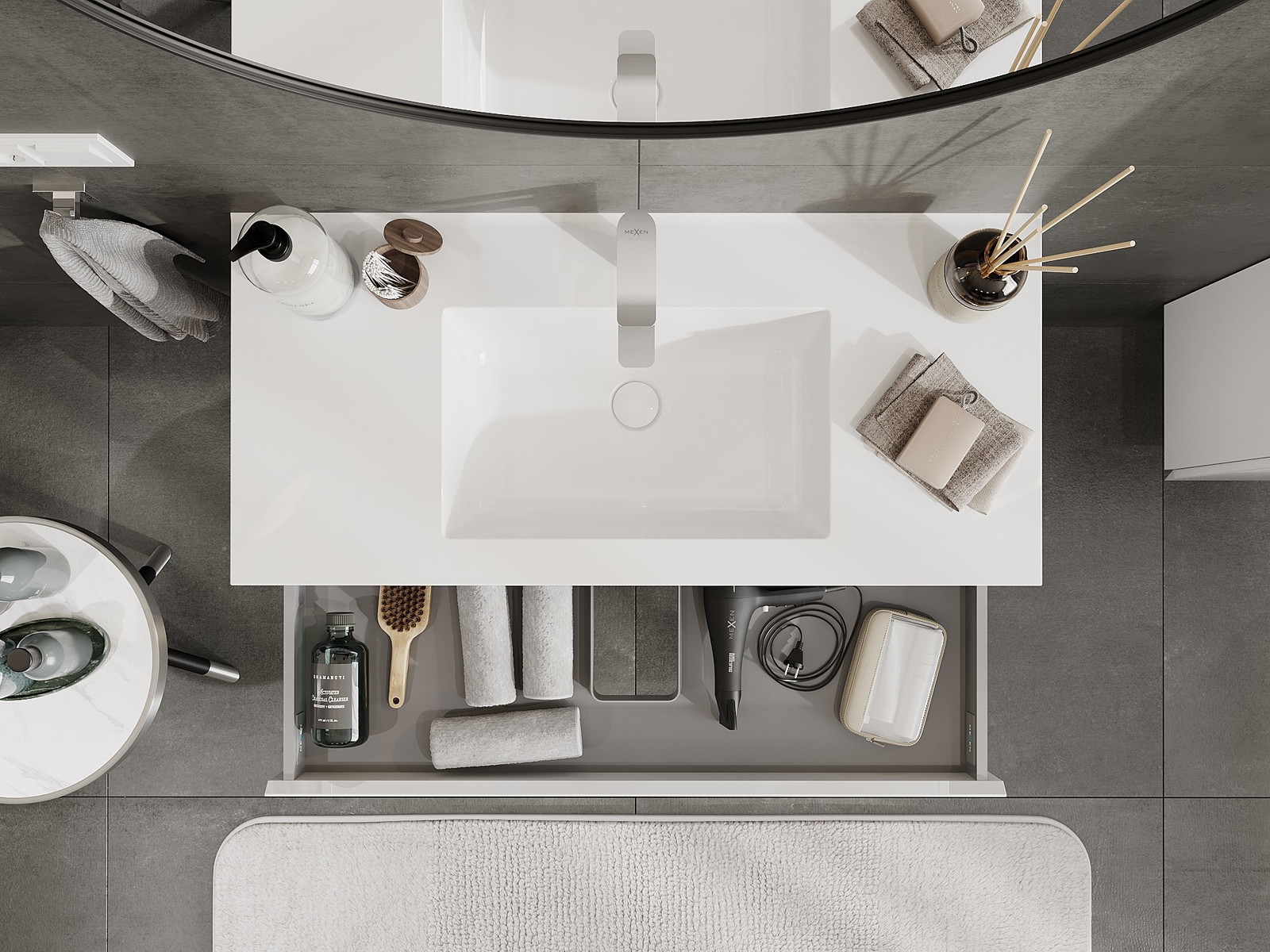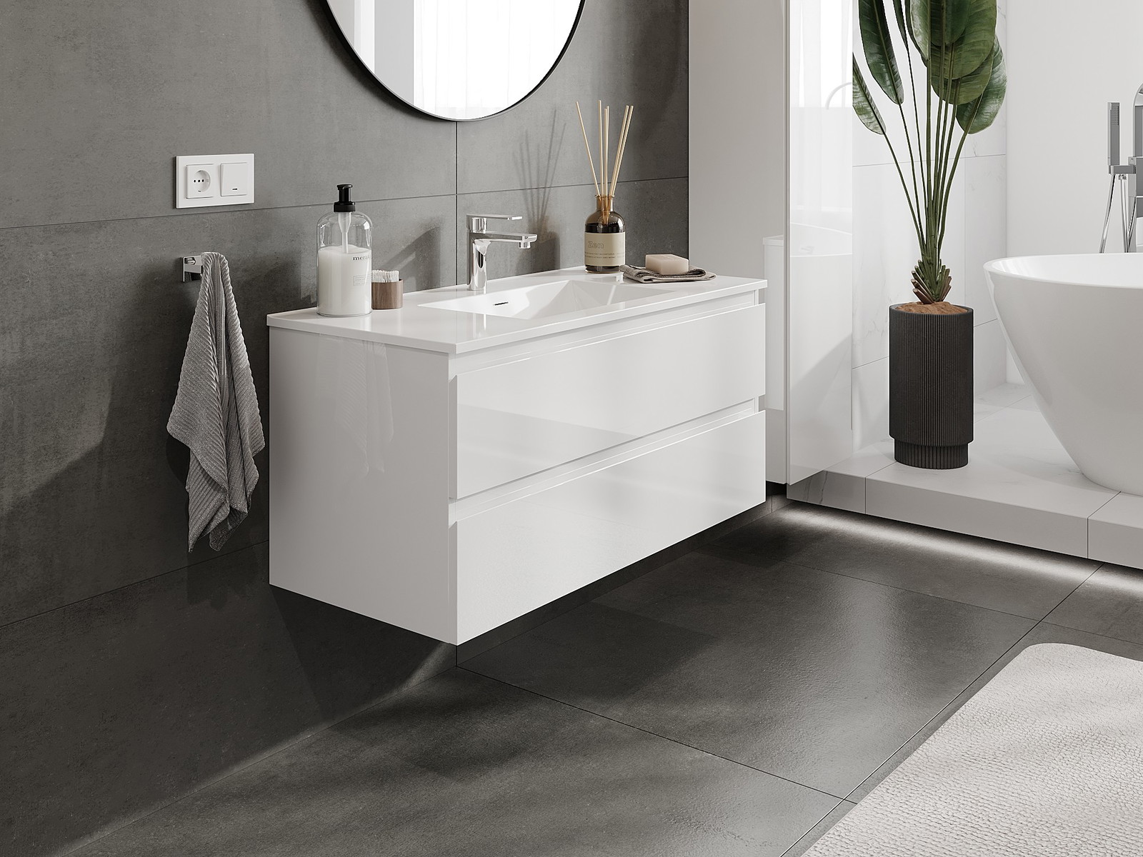 Mobilierul nostru modular pentru baie poate fi combinat în diverse configurații de culori, permițând personalizarea completă. Puteți alege atât aspectul, cât și funcțiile fiecărui element, ceea ce permite adaptarea mobilierului la preferințele dvs. stilistice și funcționale.