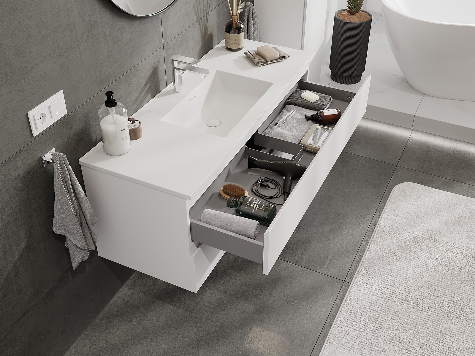 Mobilierul nostru modular pentru baie poate fi combinat în diverse configurații de culori, permițând personalizarea completă. Puteți alege atât aspectul, cât și funcțiile fiecărui element, ceea ce permite adaptarea mobilierului la preferințele dvs. stilistice și funcționale.
