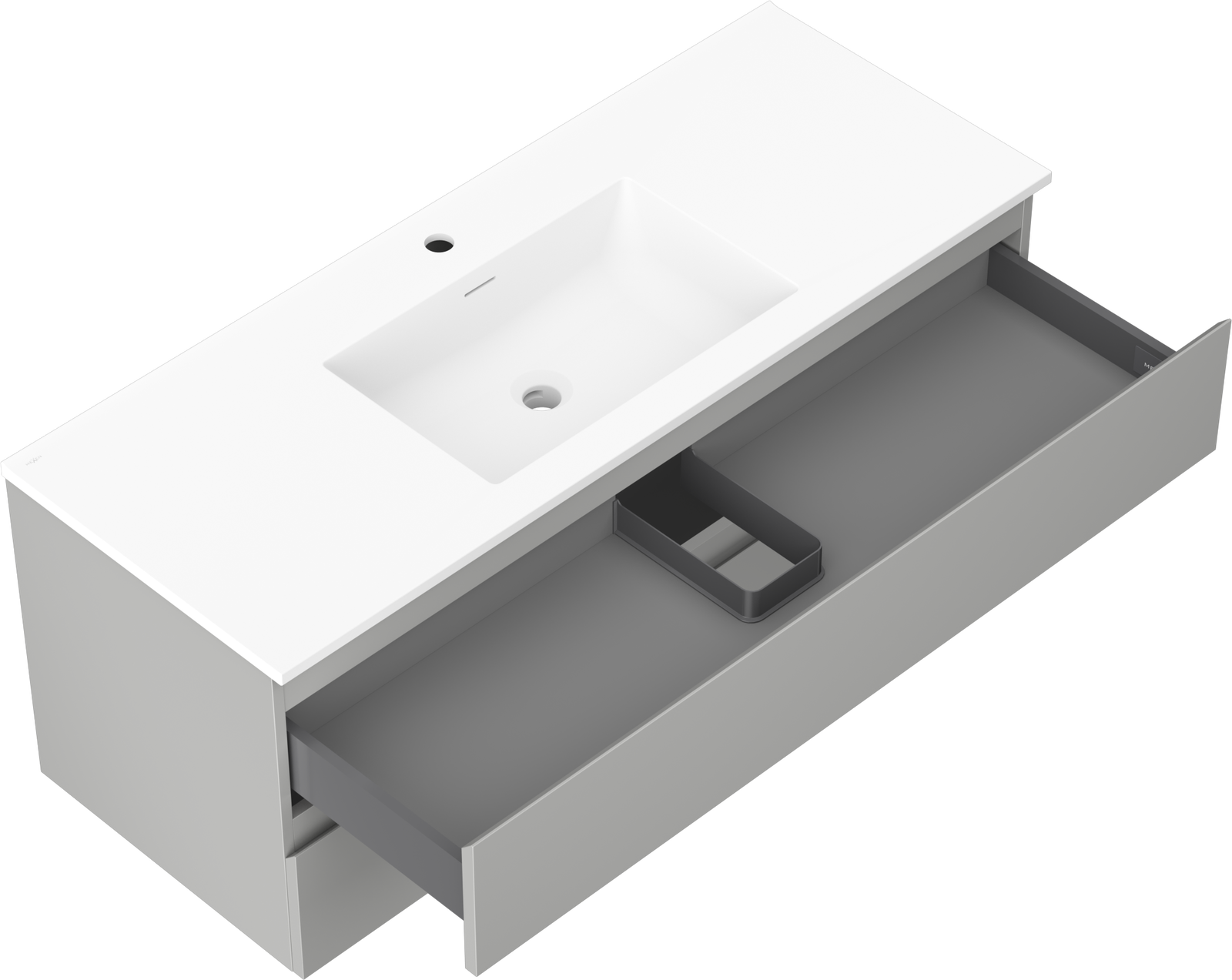 Decupajul în sertar este proiectat în așa fel încât să acomodeze sifonul, care este esențial în instalațiile de lavoare. Datorită acestui fapt, mobila poate fi montată complet funcțională, fără a fi necesară renunțarea la spațiul din sertar în favoarea instalației.