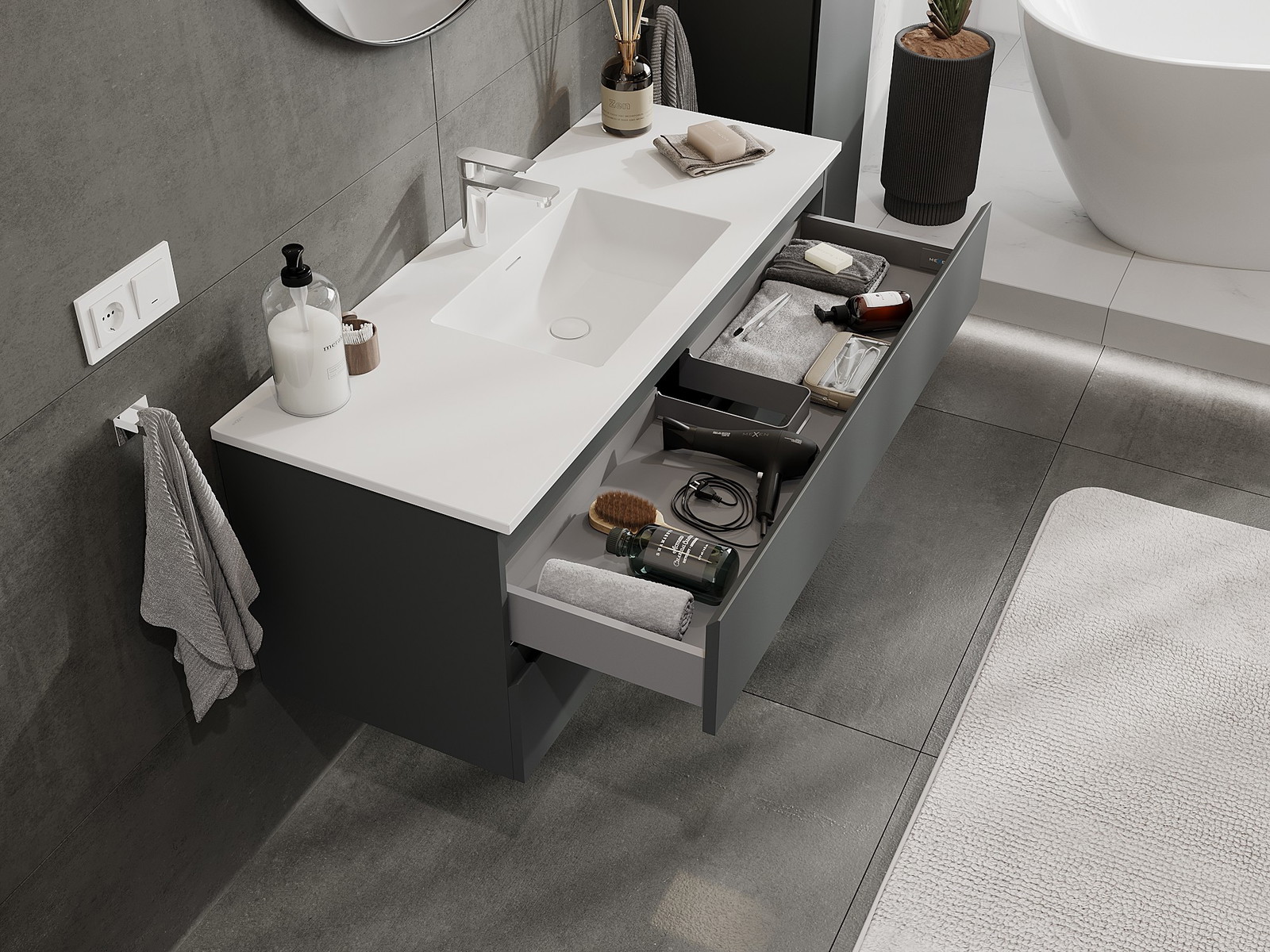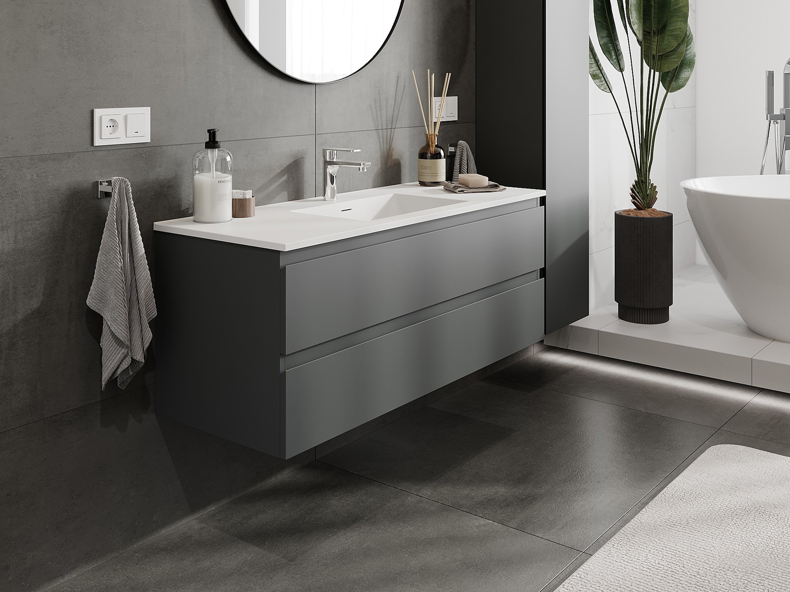 Mobilierul nostru modular pentru baie poate fi combinat în diverse configurații de culori, permițând personalizarea completă. Puteți alege atât aspectul, cât și funcțiile fiecărui element, ceea ce permite adaptarea mobilierului la preferințele dvs. stilistice și funcționale.