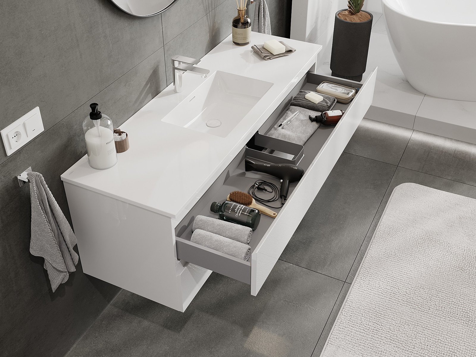 Mobilierul nostru modular pentru baie poate fi combinat în diverse configurații de culori, permițând personalizarea completă. Puteți alege atât aspectul, cât și funcțiile fiecărui element, ceea ce permite adaptarea mobilierului la preferințele dvs. stilistice și funcționale.