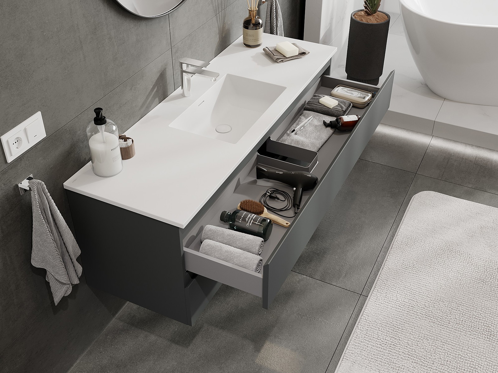 Mobilierul nostru modular pentru baie poate fi combinat în diverse configurații de culori, permițând personalizarea completă. Puteți alege atât aspectul, cât și funcțiile fiecărui element, ceea ce permite adaptarea mobilierului la preferințele dvs. stilistice și funcționale.