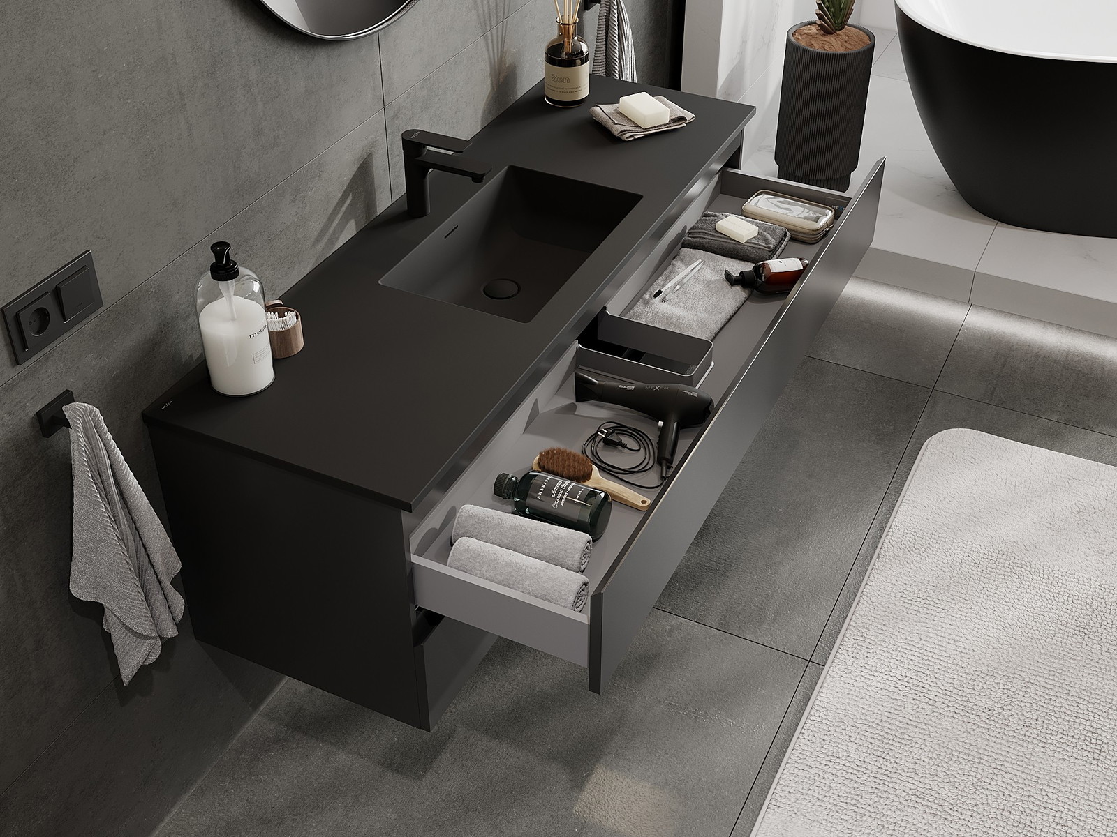 Mobilierul nostru modular pentru baie poate fi combinat în diverse configurații de culori, permițând personalizarea completă. Puteți alege atât aspectul, cât și funcțiile fiecărui element, ceea ce permite adaptarea mobilierului la preferințele dvs. stilistice și funcționale.
