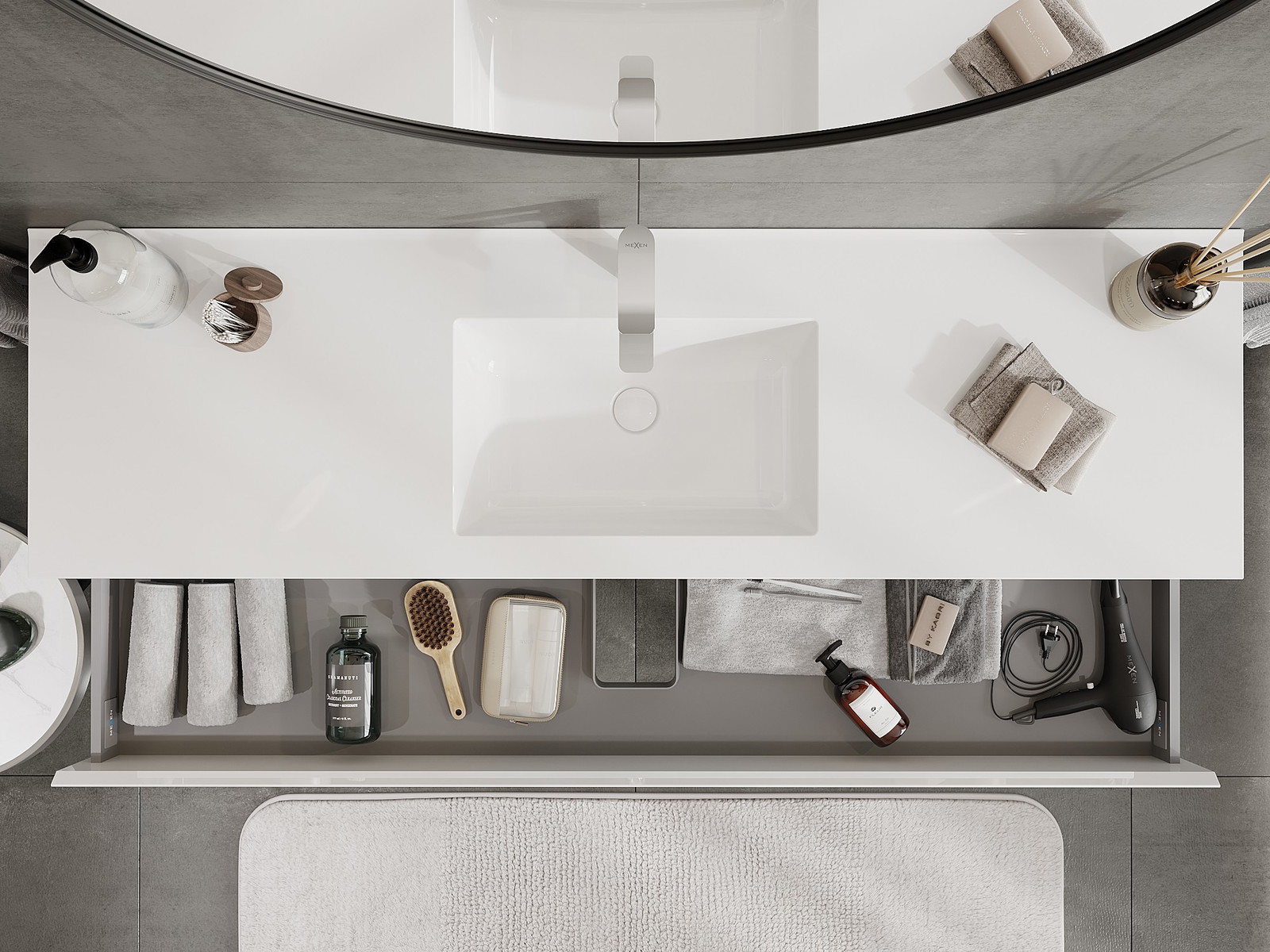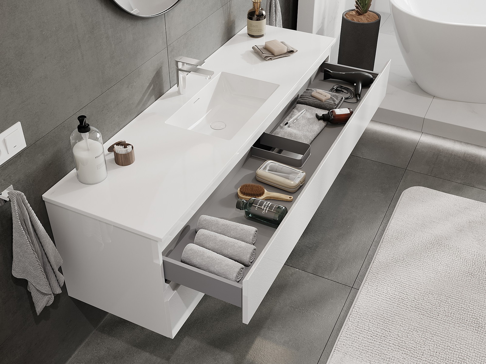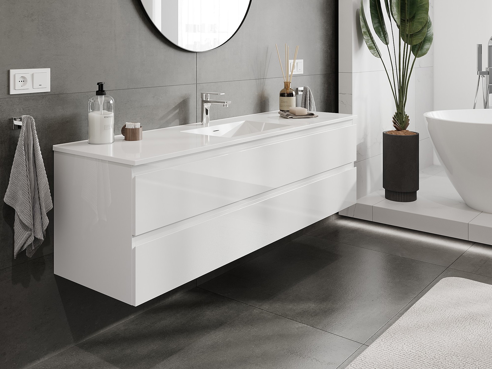 Mobilierul nostru modular pentru baie poate fi combinat în diverse configurații de culori, permițând personalizarea completă. Puteți alege atât aspectul, cât și funcțiile fiecărui element, ceea ce permite adaptarea mobilierului la preferințele dvs. stilistice și funcționale.