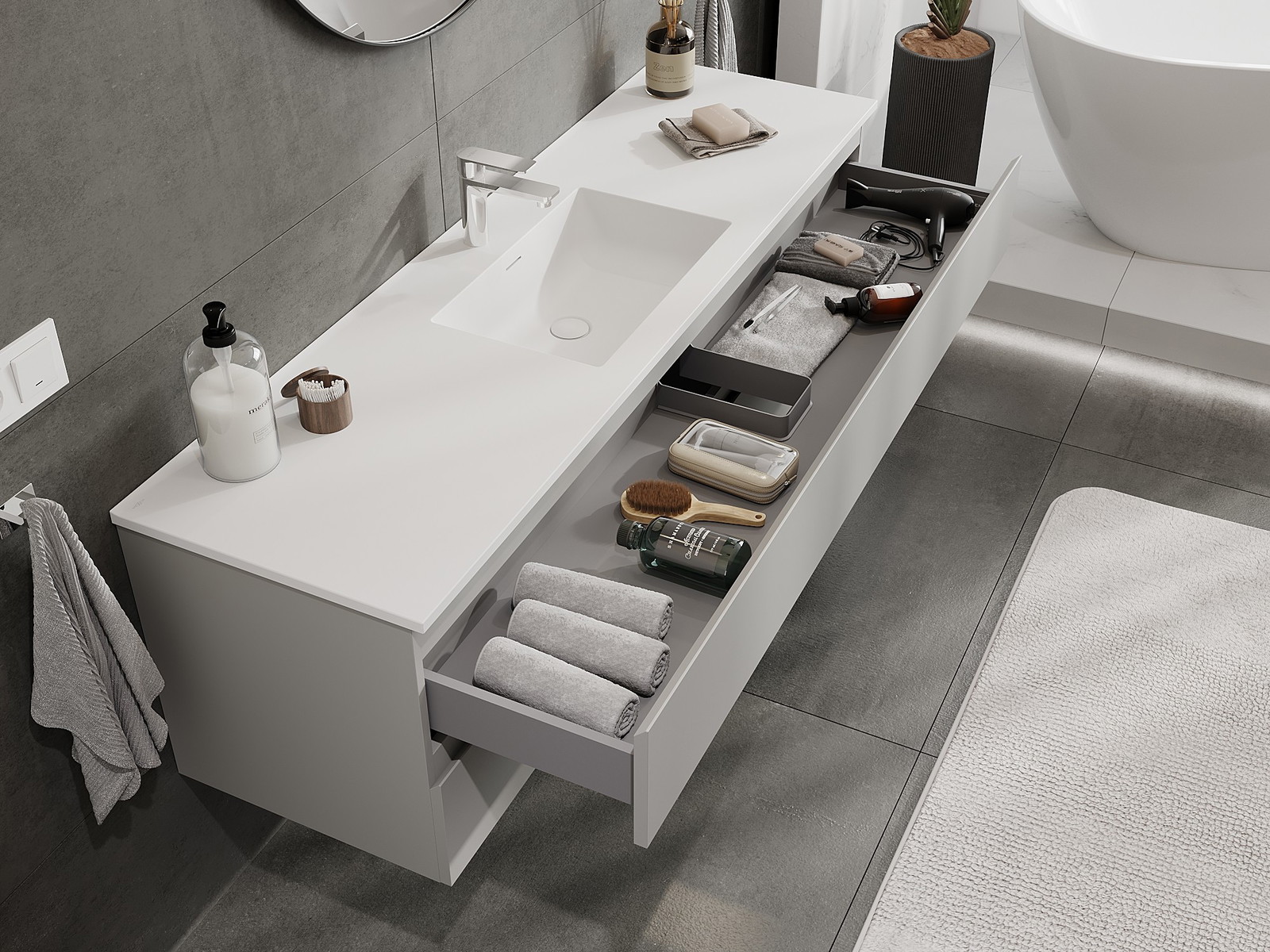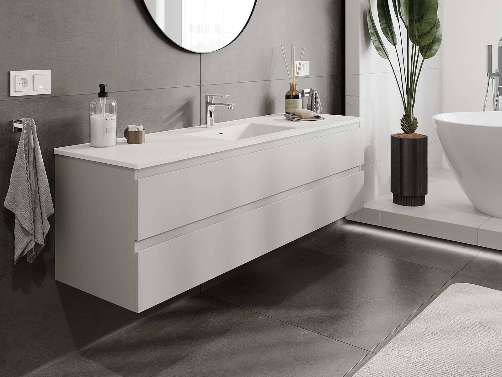 Mobilierul nostru modular pentru baie poate fi combinat în diverse configurații de culori, permițând personalizarea completă. Puteți alege atât aspectul, cât și funcțiile fiecărui element, ceea ce permite adaptarea mobilierului la preferințele dvs. stilistice și funcționale.