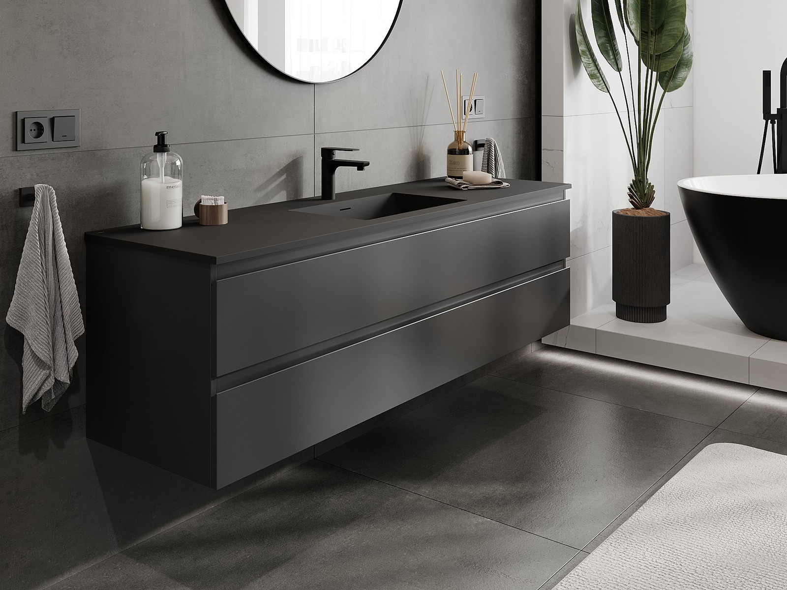 Mobilierul nostru modular pentru baie poate fi combinat în diverse configurații de culori, permițând personalizarea completă. Puteți alege atât aspectul, cât și funcțiile fiecărui element, ceea ce permite adaptarea mobilierului la preferințele dvs. stilistice și funcționale.