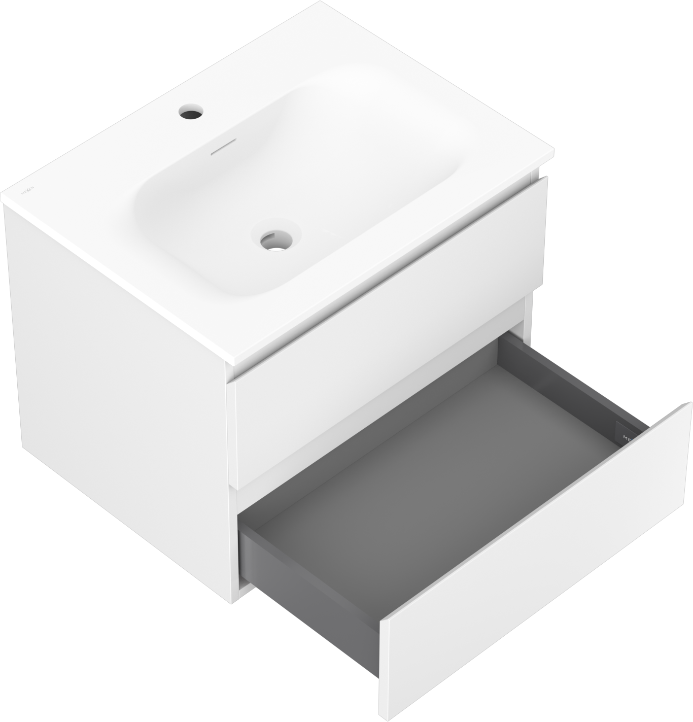 Decupajul în sertar este proiectat în așa fel încât să acomodeze sifonul, care este esențial în instalațiile de lavoare. Datorită acestui fapt, mobila poate fi montată complet funcțională, fără a fi necesară renunțarea la spațiul din sertar în favoarea instalației.