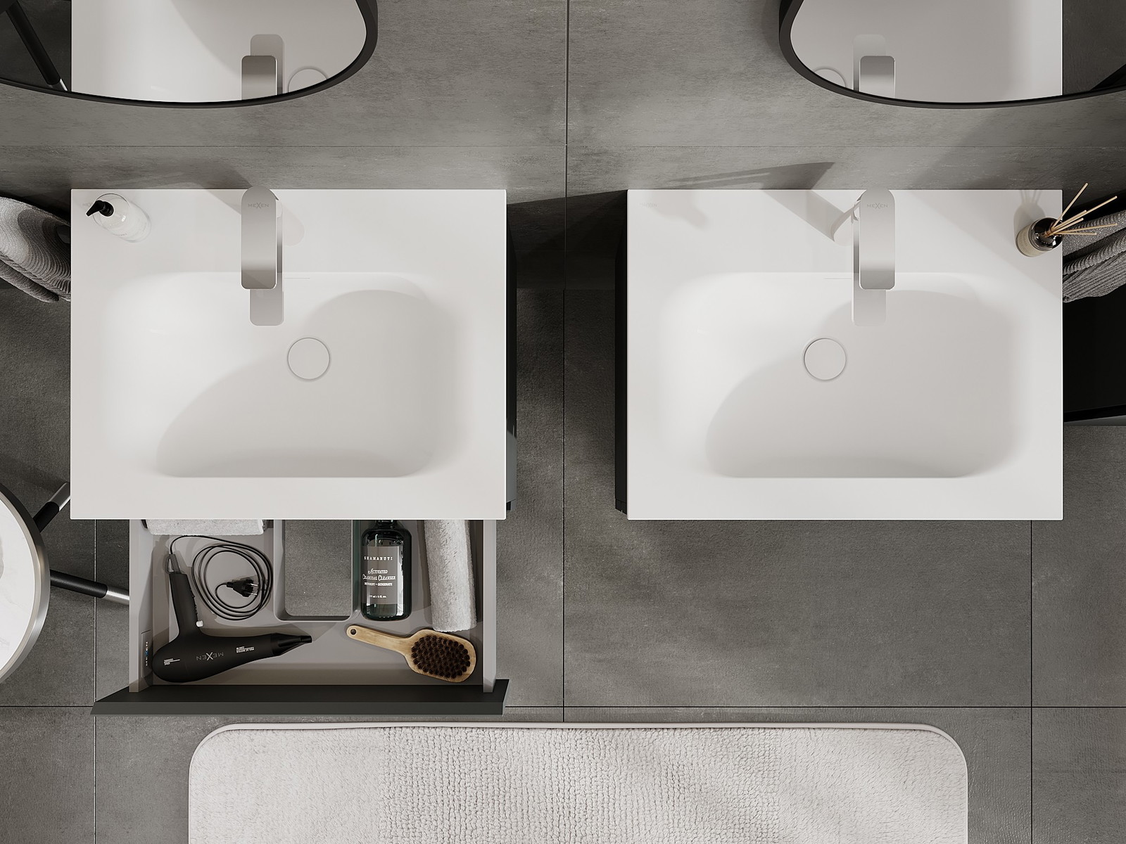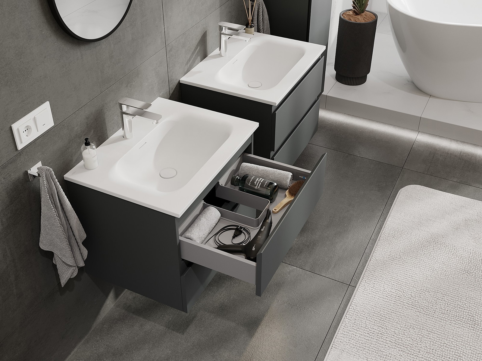 Mobilierul nostru modular pentru baie poate fi combinat în diverse configurații de culori, permițând personalizarea completă. Puteți alege atât aspectul, cât și funcțiile fiecărui element, ceea ce permite adaptarea mobilierului la preferințele dvs. stilistice și funcționale.