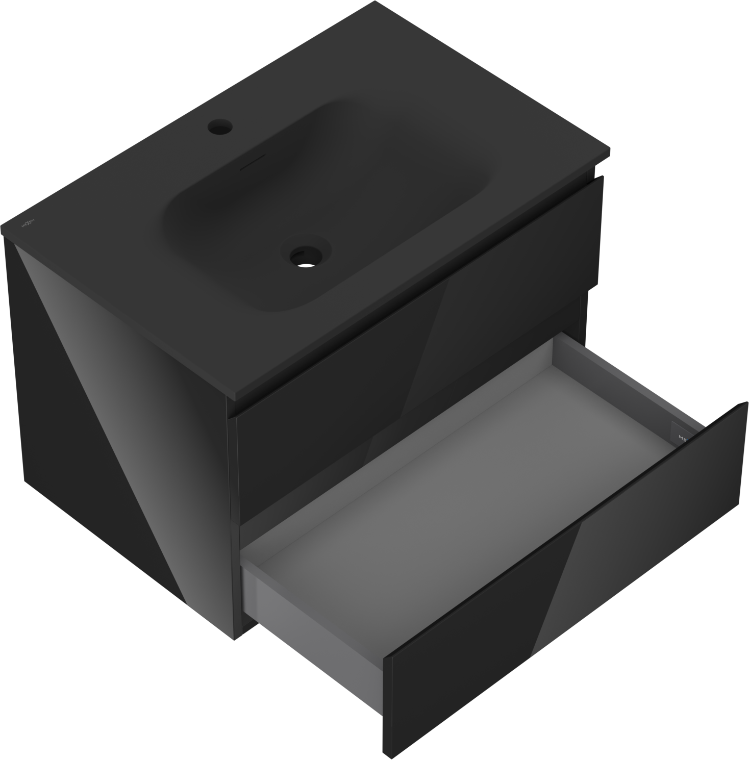 Decupajul în sertar este proiectat în așa fel încât să acomodeze sifonul, care este esențial în instalațiile de lavoare. Datorită acestui fapt, mobila poate fi montată complet funcțională, fără a fi necesară renunțarea la spațiul din sertar în favoarea instalației.