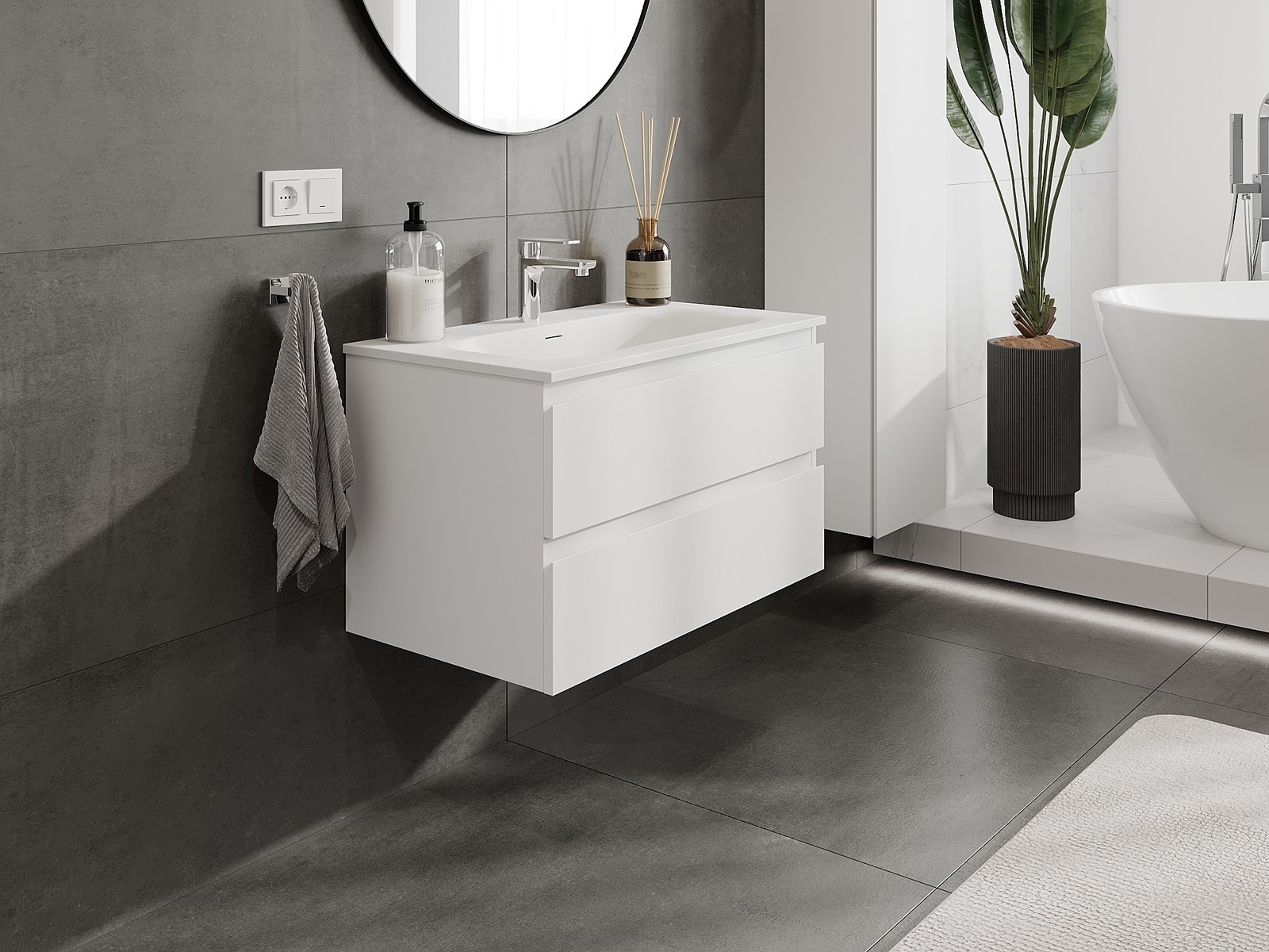 Corpul dulapului este livrat complet asamblat, ceea ce înseamnă confort maxim și economie de timp. Nu trebuie să pierzi ore întregi asamblând mobilierul – este suficient să îl montezi în locul ales din baie. Aceasta este soluția ideală pentru persoanele care prețuiesc montajul rapid și efectul imediat.