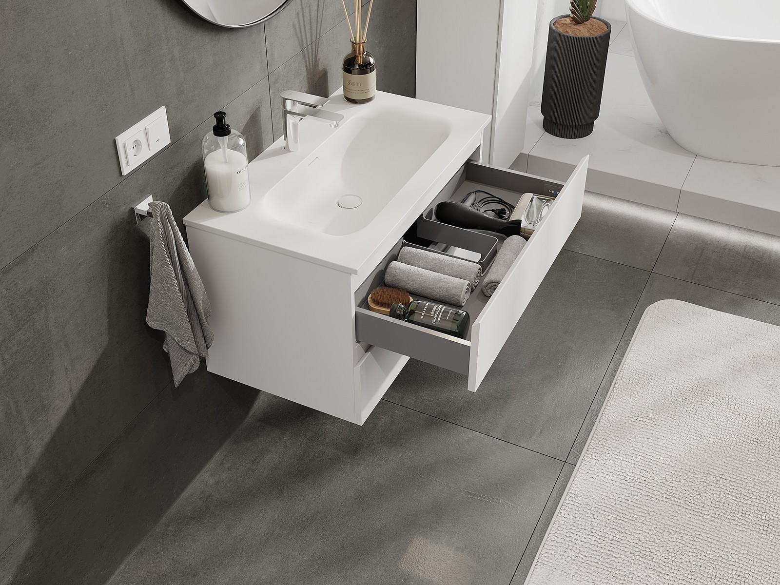 Mobilierul nostru modular pentru baie poate fi combinat în diverse configurații de culori, permițând personalizarea completă. Puteți alege atât aspectul, cât și funcțiile fiecărui element, ceea ce permite adaptarea mobilierului la preferințele dvs. stilistice și funcționale.