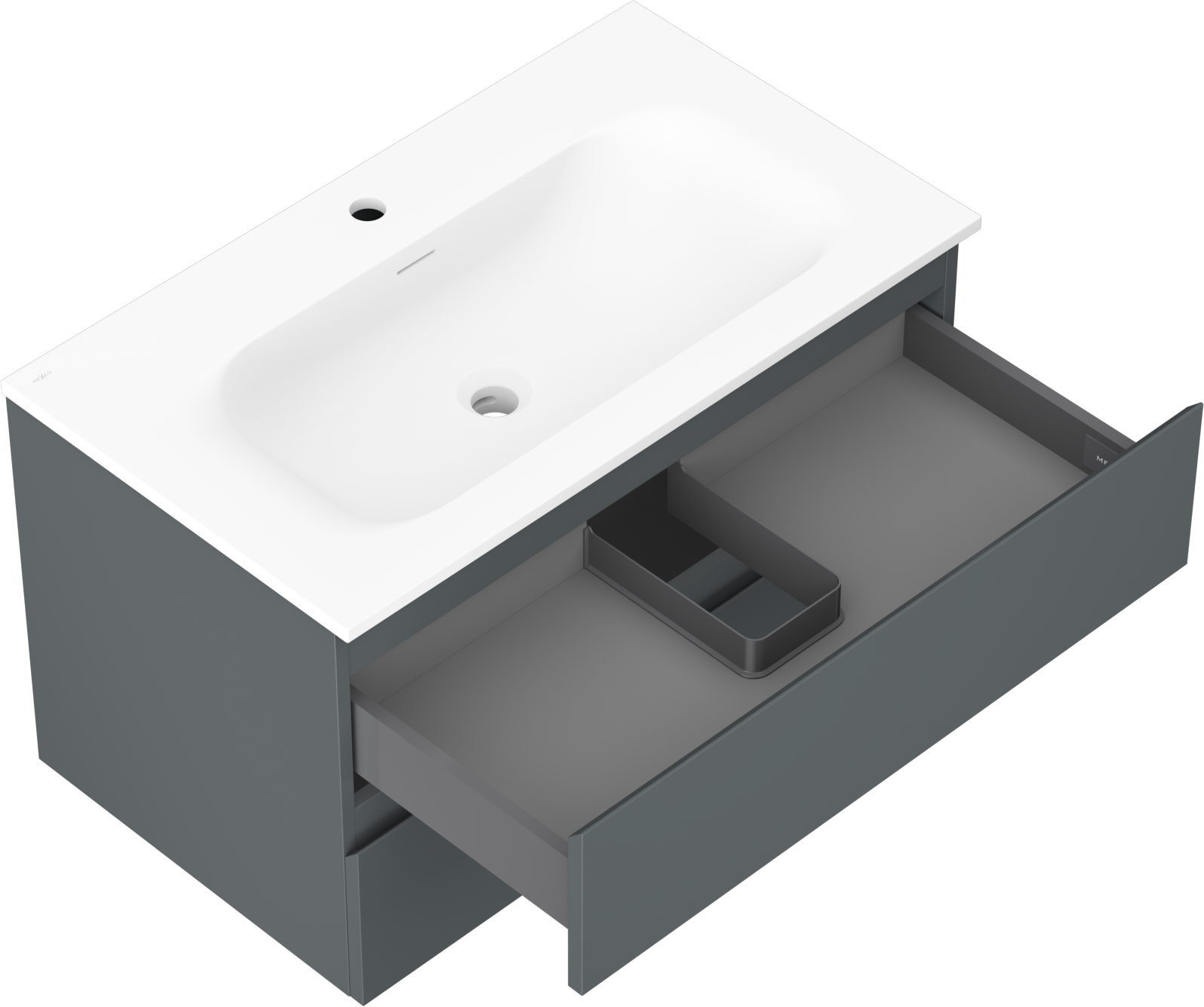 Decupajul în sertar este proiectat în așa fel încât să acomodeze sifonul, care este esențial în instalațiile de lavoare. Datorită acestui fapt, mobila poate fi montată complet funcțională, fără a fi necesară renunțarea la spațiul din sertar în favoarea instalației.
