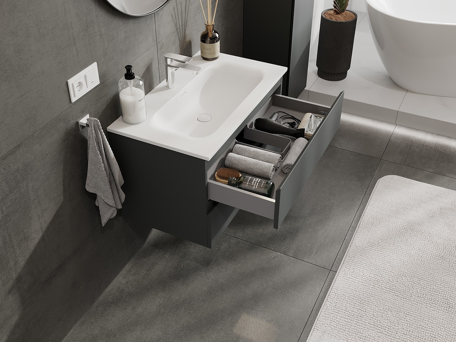 Mobilierul nostru modular pentru baie poate fi combinat în diverse configurații de culori, permițând personalizarea completă. Puteți alege atât aspectul, cât și funcțiile fiecărui element, ceea ce permite adaptarea mobilierului la preferințele dvs. stilistice și funcționale.