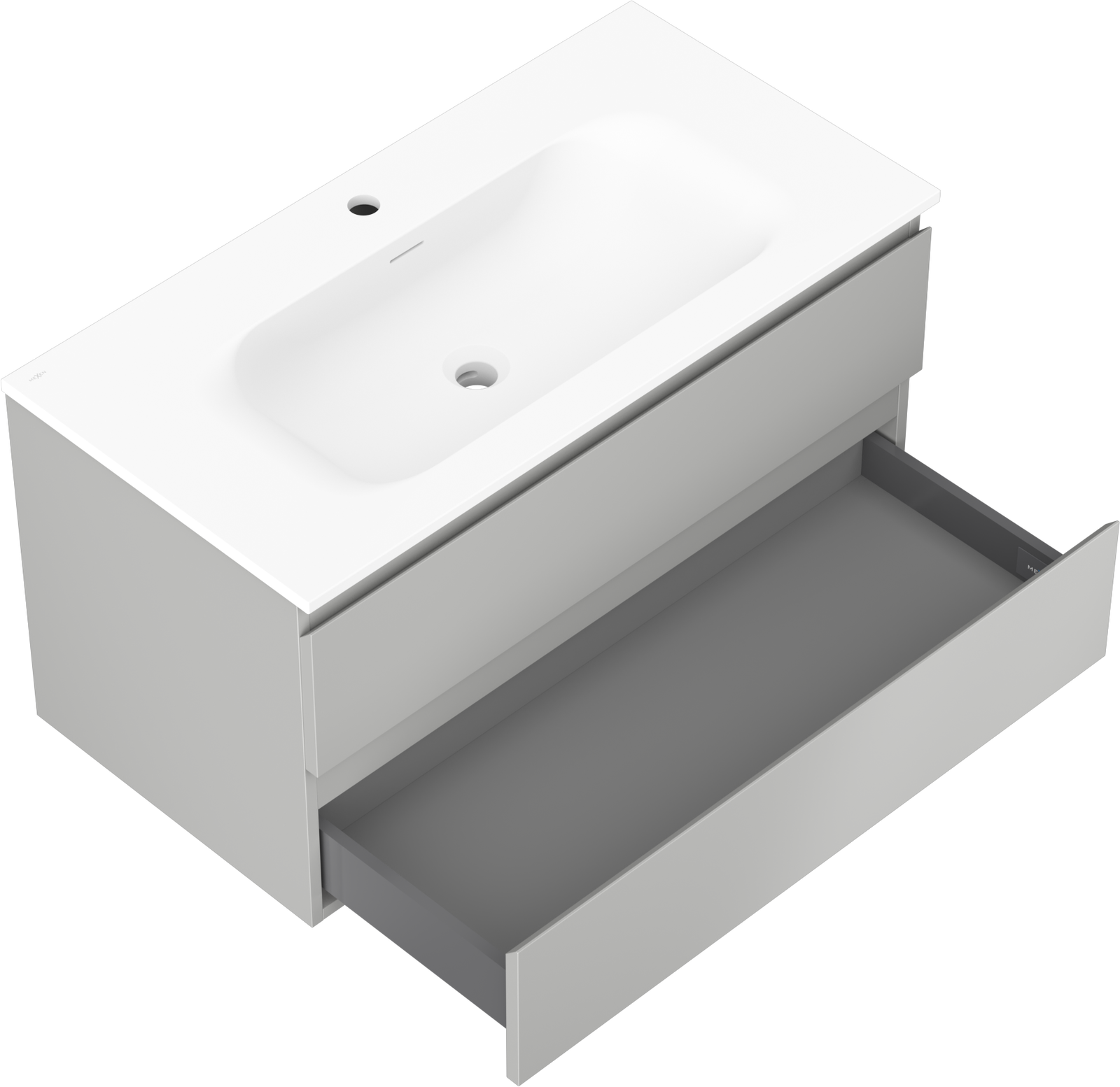 Decupajul în sertar este proiectat în așa fel încât să acomodeze sifonul, care este esențial în instalațiile de lavoare. Datorită acestui fapt, mobila poate fi montată complet funcțională, fără a fi necesară renunțarea la spațiul din sertar în favoarea instalației.