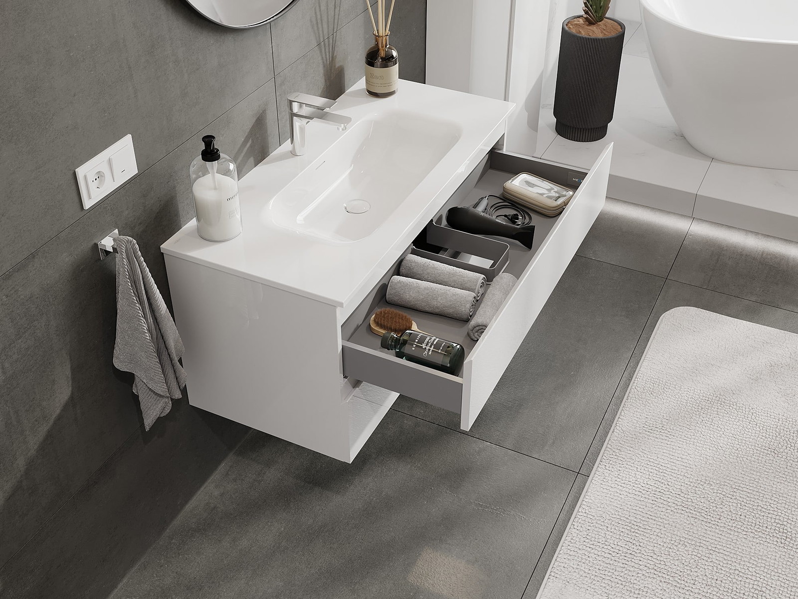 Mobilierul nostru modular pentru baie poate fi combinat în diverse configurații de culori, permițând personalizarea completă. Puteți alege atât aspectul, cât și funcțiile fiecărui element, ceea ce permite adaptarea mobilierului la preferințele dvs. stilistice și funcționale.
