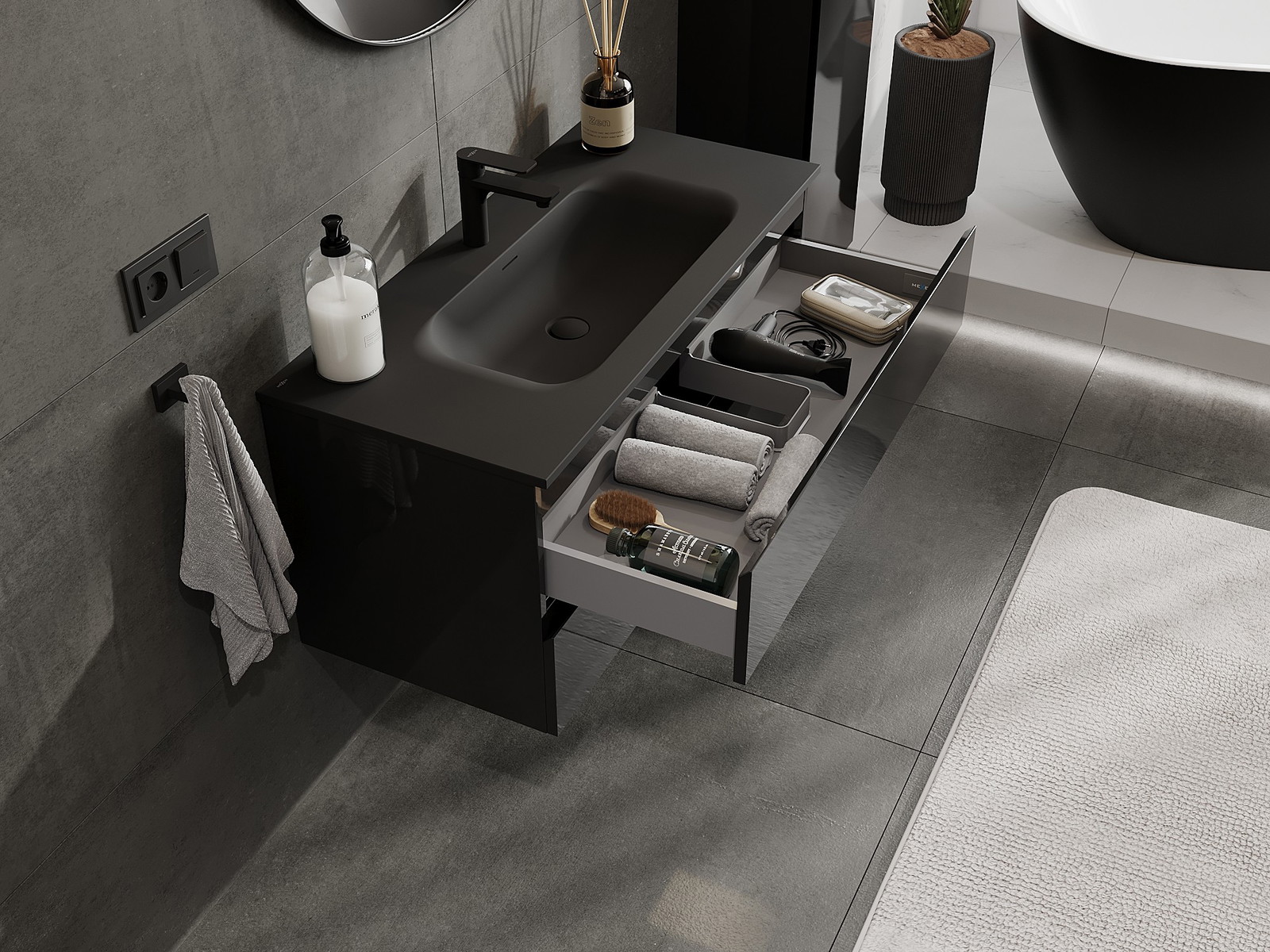 Mobilierul nostru modular pentru baie poate fi combinat în diverse configurații de culori, permițând personalizarea completă. Puteți alege atât aspectul, cât și funcțiile fiecărui element, ceea ce permite adaptarea mobilierului la preferințele dvs. stilistice și funcționale.