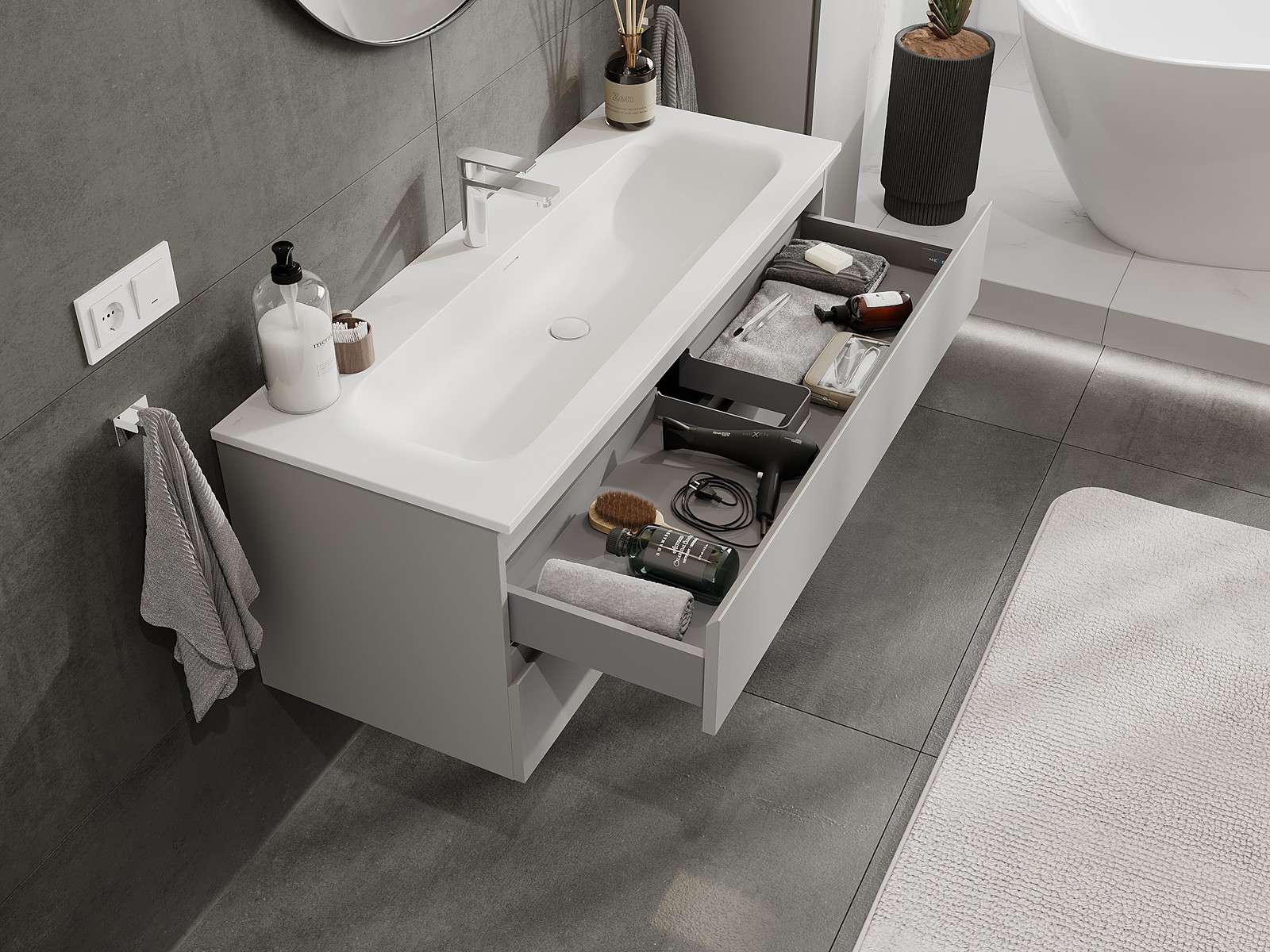 Mobilierul nostru modular pentru baie poate fi combinat în diverse configurații de culori, permițând personalizarea completă. Puteți alege atât aspectul, cât și funcțiile fiecărui element, ceea ce permite adaptarea mobilierului la preferințele dvs. stilistice și funcționale.