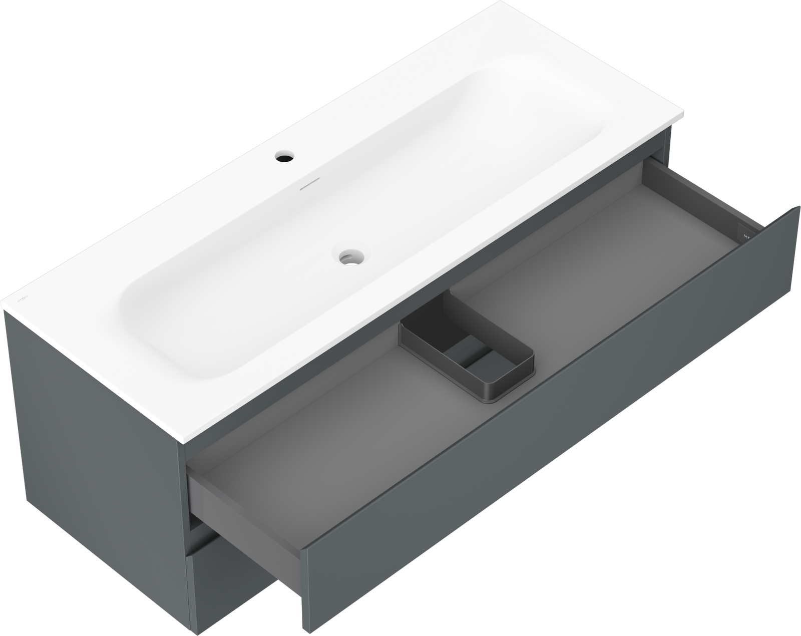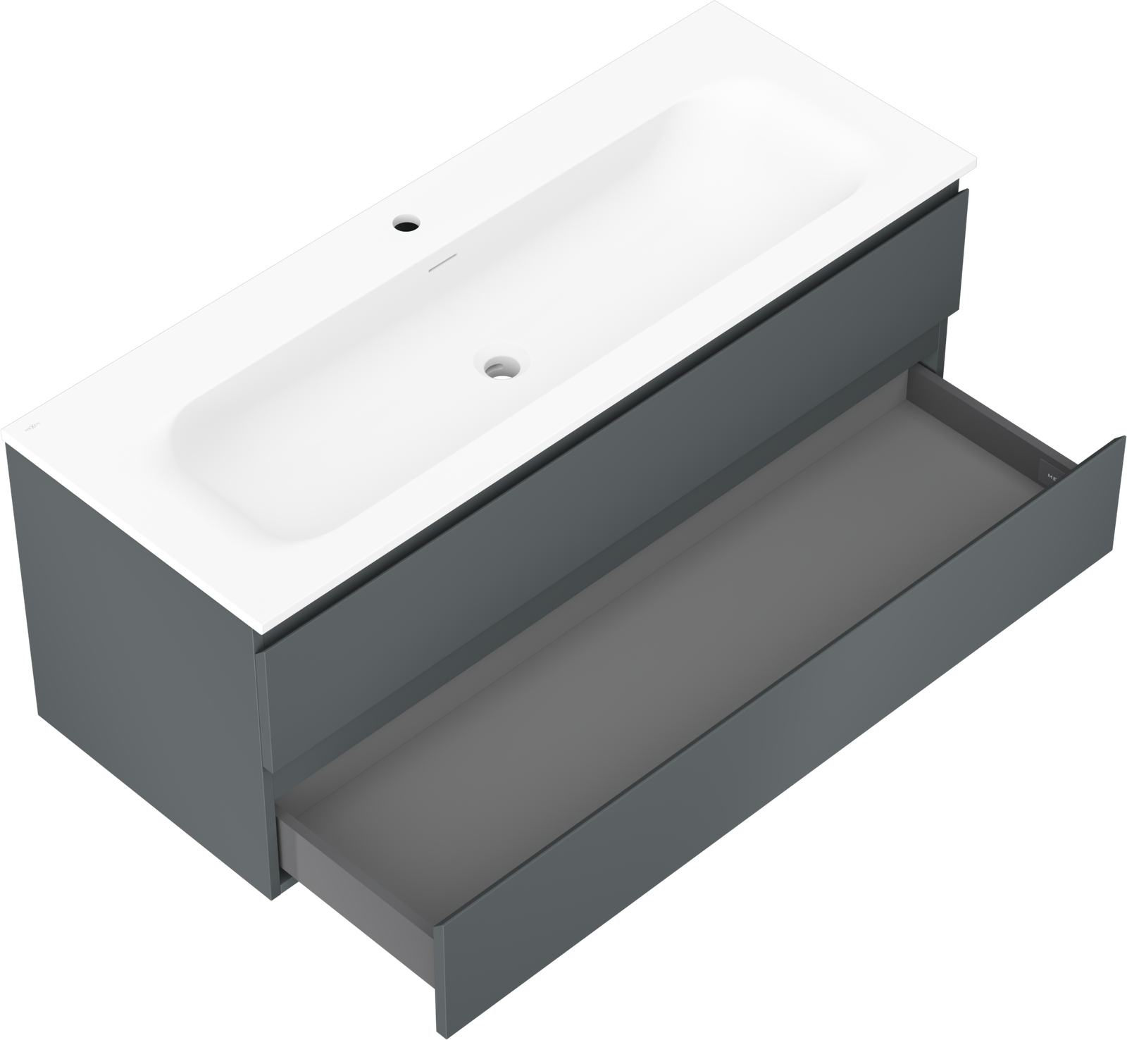 Decupajul în sertar este proiectat în așa fel încât să acomodeze sifonul, care este esențial în instalațiile de lavoare. Datorită acestui fapt, mobila poate fi montată complet funcțională, fără a fi necesară renunțarea la spațiul din sertar în favoarea instalației.