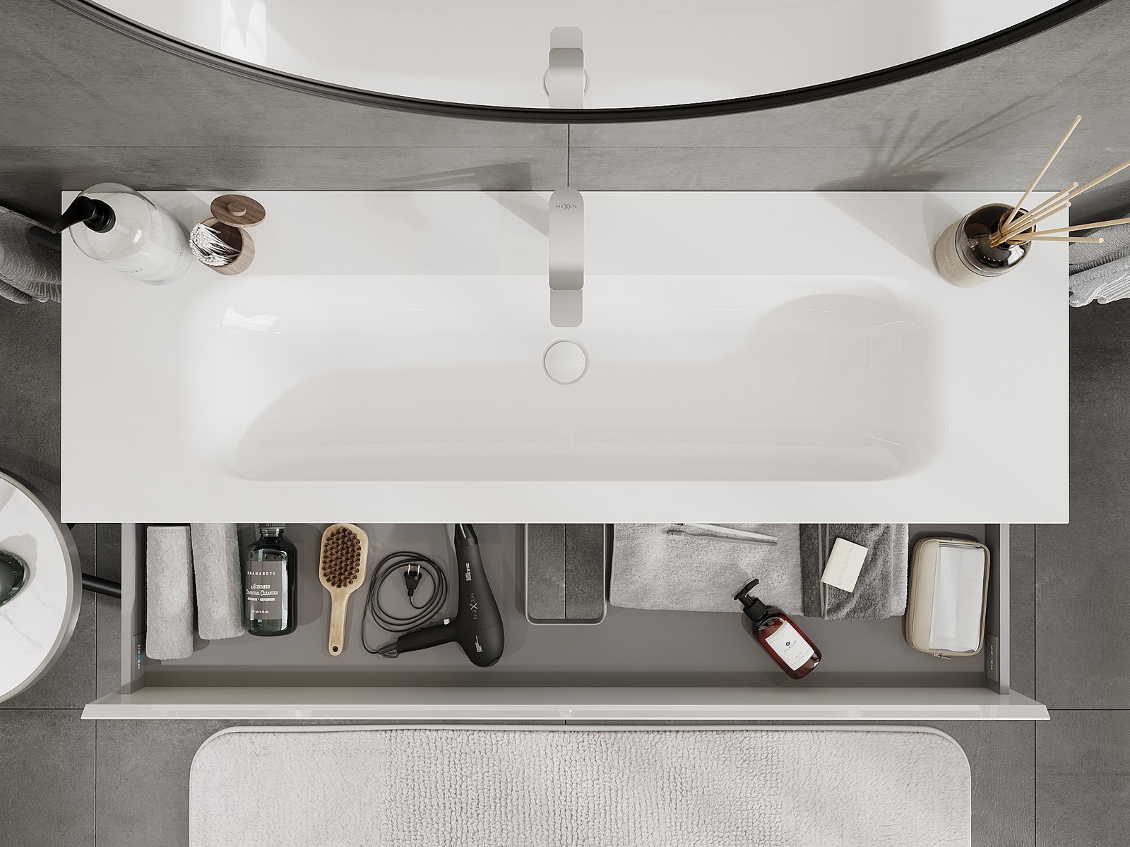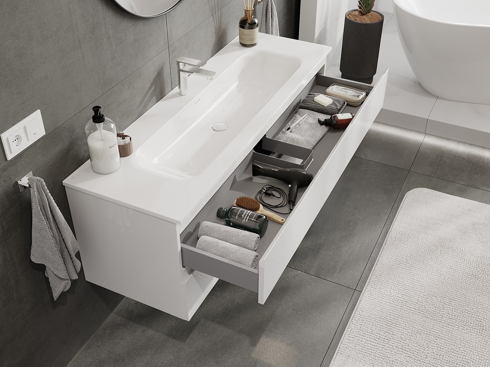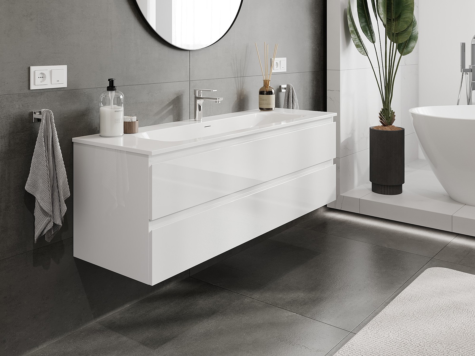 Mobilierul nostru modular pentru baie poate fi combinat în diverse configurații de culori, permițând personalizarea completă. Puteți alege atât aspectul, cât și funcțiile fiecărui element, ceea ce permite adaptarea mobilierului la preferințele dvs. stilistice și funcționale.