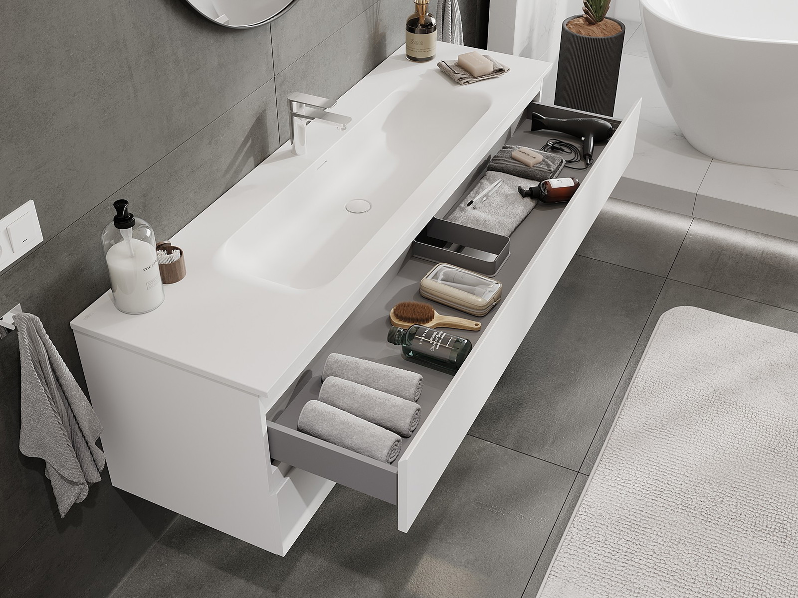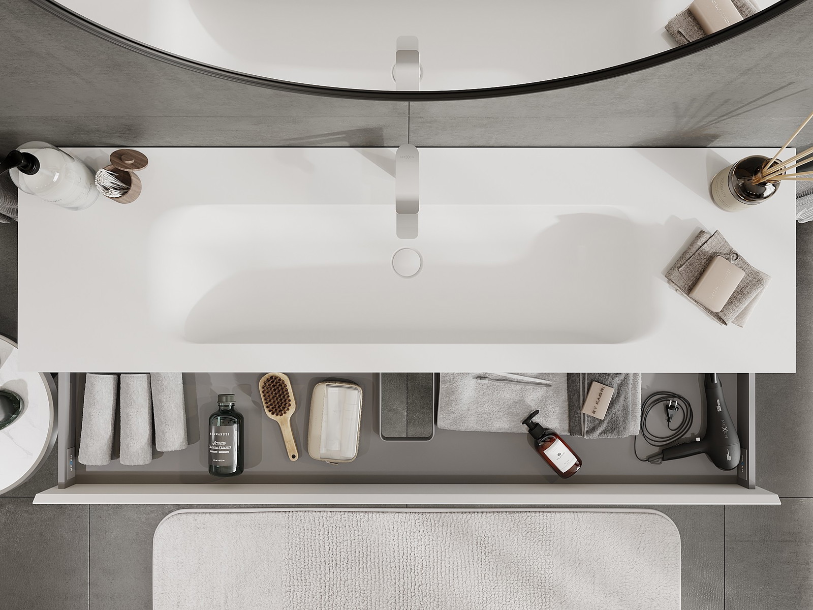 Mobilierul nostru modular pentru baie poate fi combinat în diverse configurații de culori, permițând personalizarea completă. Puteți alege atât aspectul, cât și funcțiile fiecărui element, ceea ce permite adaptarea mobilierului la preferințele dvs. stilistice și funcționale.