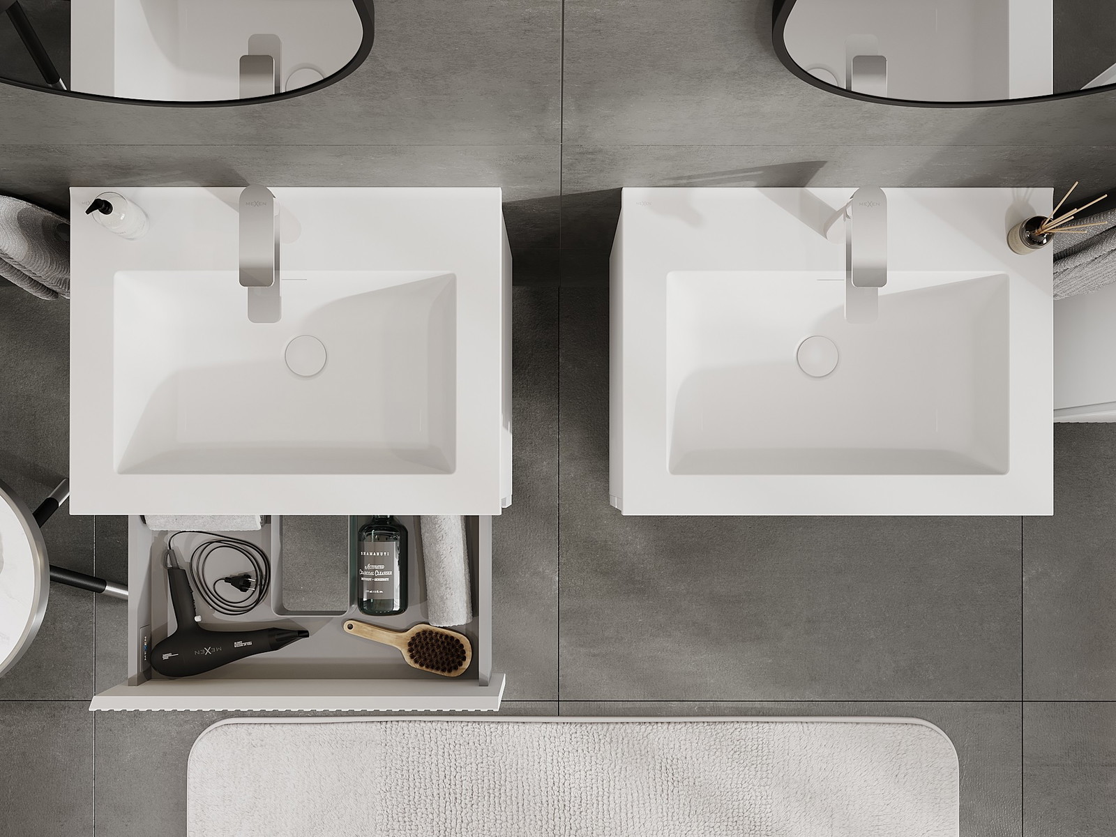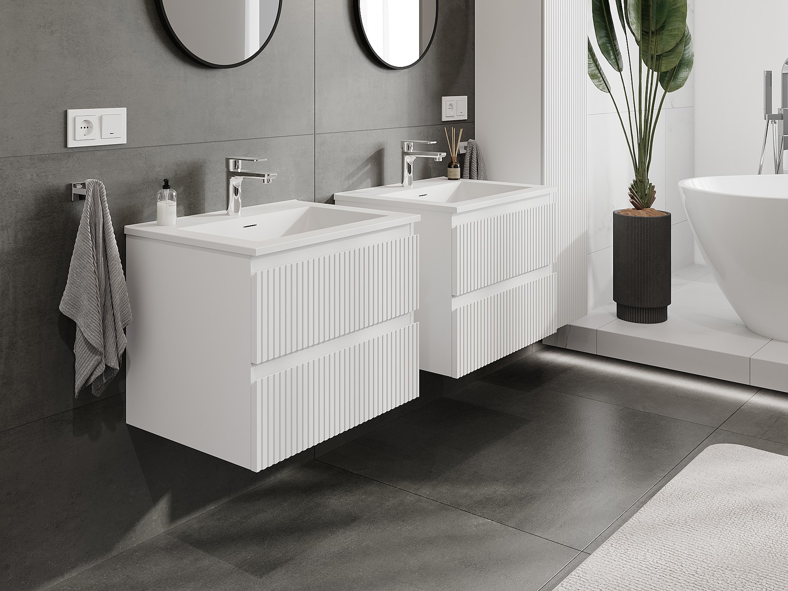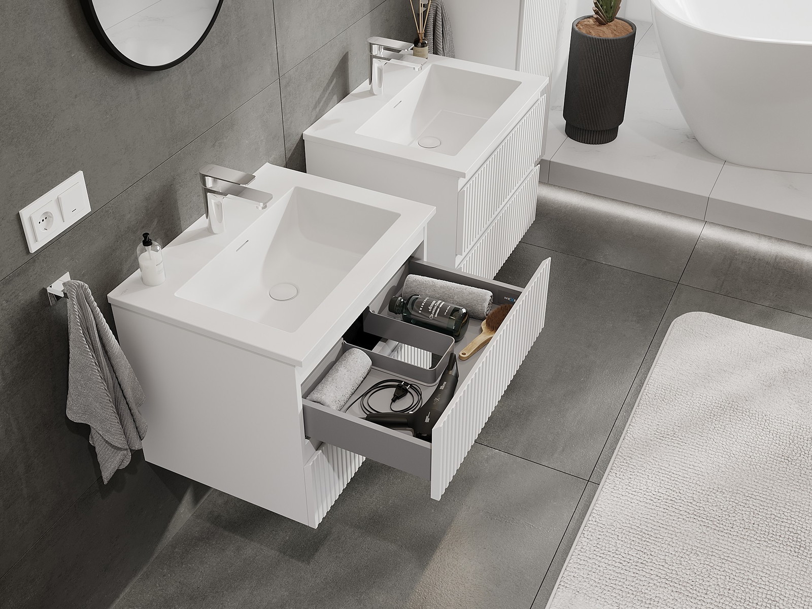 Mobilierul nostru modular pentru baie poate fi combinat în diverse configurații de culori, permițând personalizarea completă. Puteți alege atât aspectul, cât și funcțiile fiecărui element, ceea ce permite adaptarea mobilierului la preferințele dvs. stilistice și funcționale.