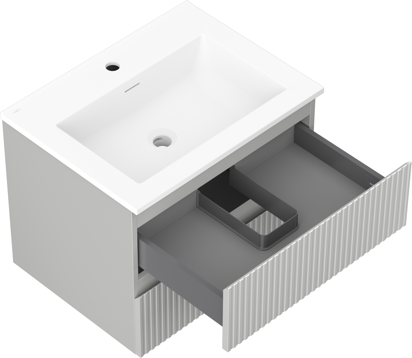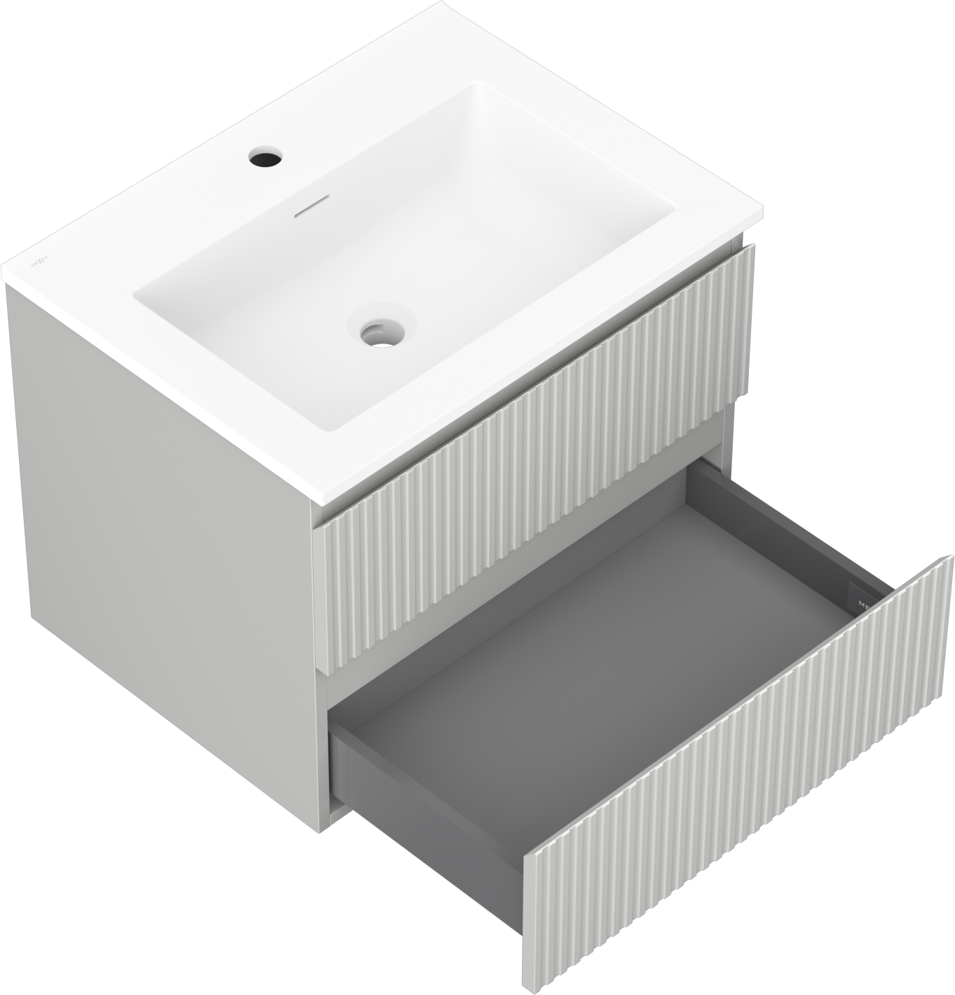 Mexen Rivel dulap baie 60 cm cu lavoar Otis, 2 sertare, canelat, gri mat/alb mat - 91A20-06047-2-BFF62-W18M01