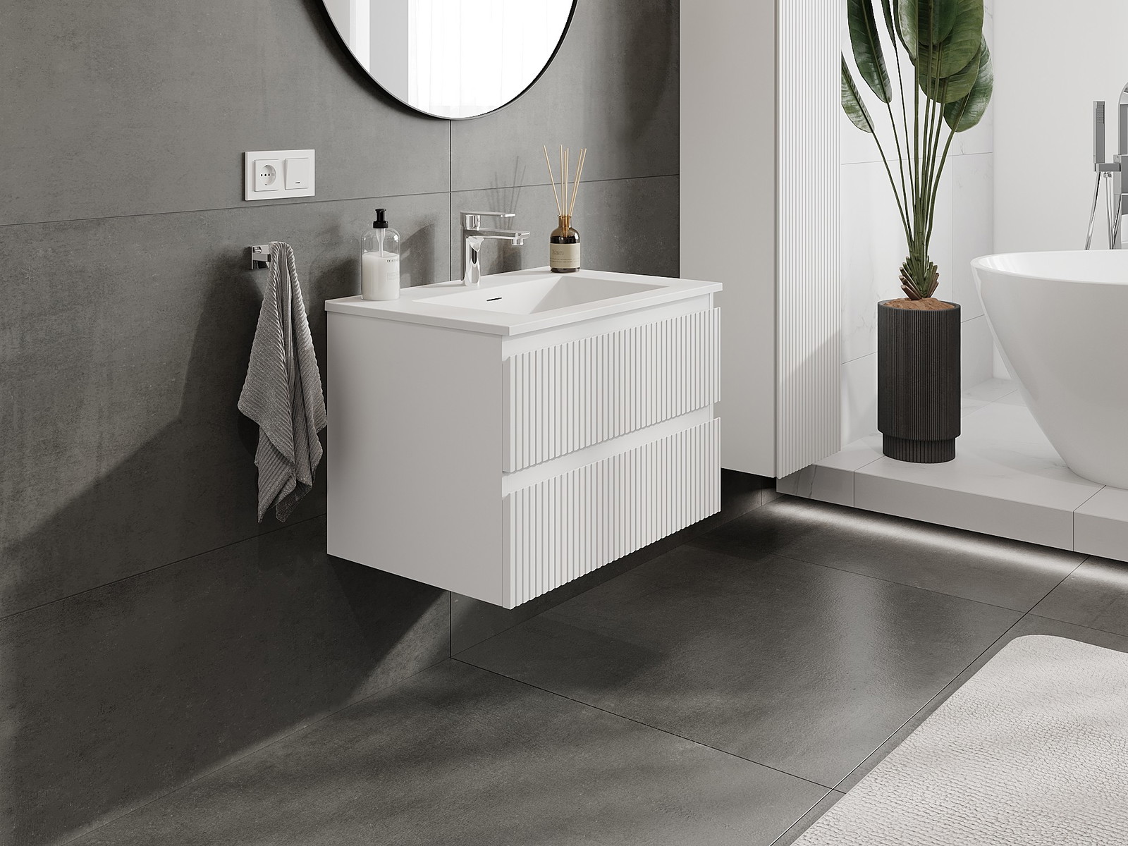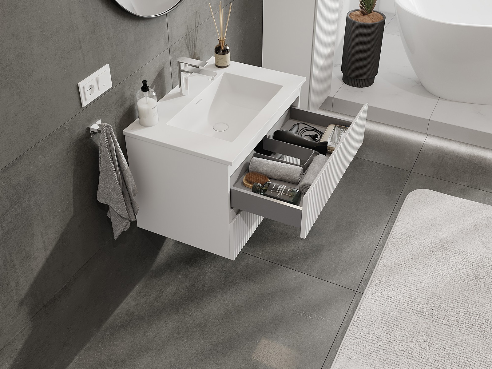 Corpul dulapului este livrat complet asamblat, ceea ce înseamnă confort maxim și economie de timp. Nu trebuie să pierzi ore întregi asamblând mobilierul – este suficient să îl montezi în locul ales din baie. Aceasta este soluția ideală pentru persoanele care prețuiesc montajul rapid și efectul imediat.