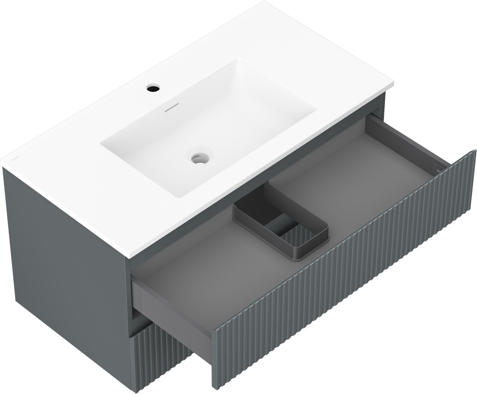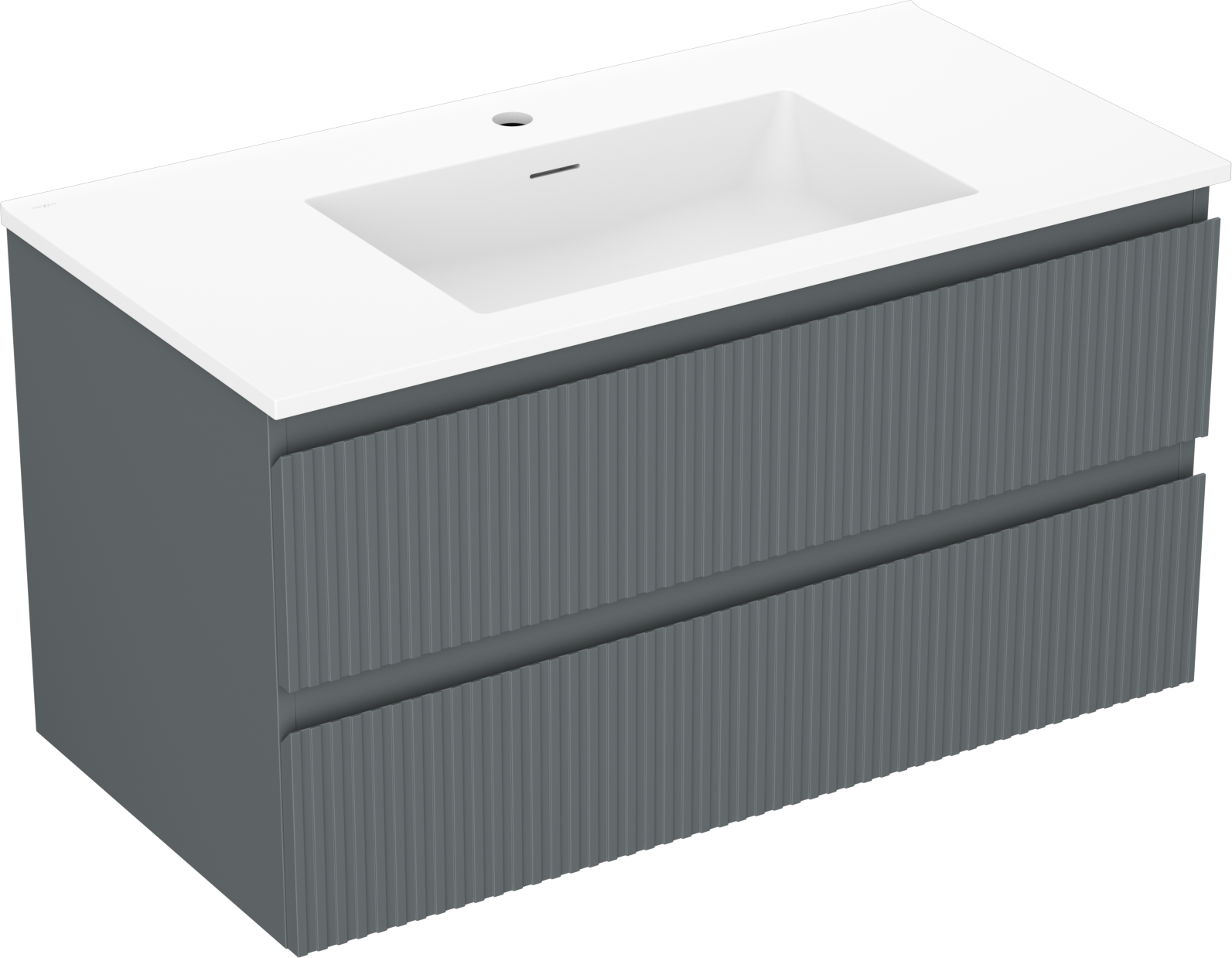 Mexen Rivel dulap de baie 90 cm cu lavoar Otis, 2 sertare, cu caneluri, grafit mat/alb mat - 91A20-09047-2-BFF66-W18M0
