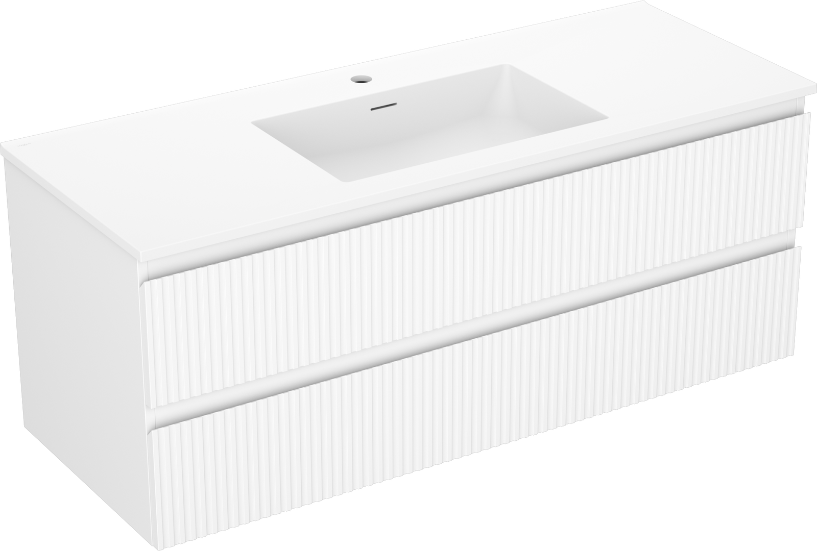 Mexen Rivel dulap baie 120 cm cu lavoar Otis, 2 sertare, finisaj striat, alb mat - 91A20-12047-2-BFF01-W18M01