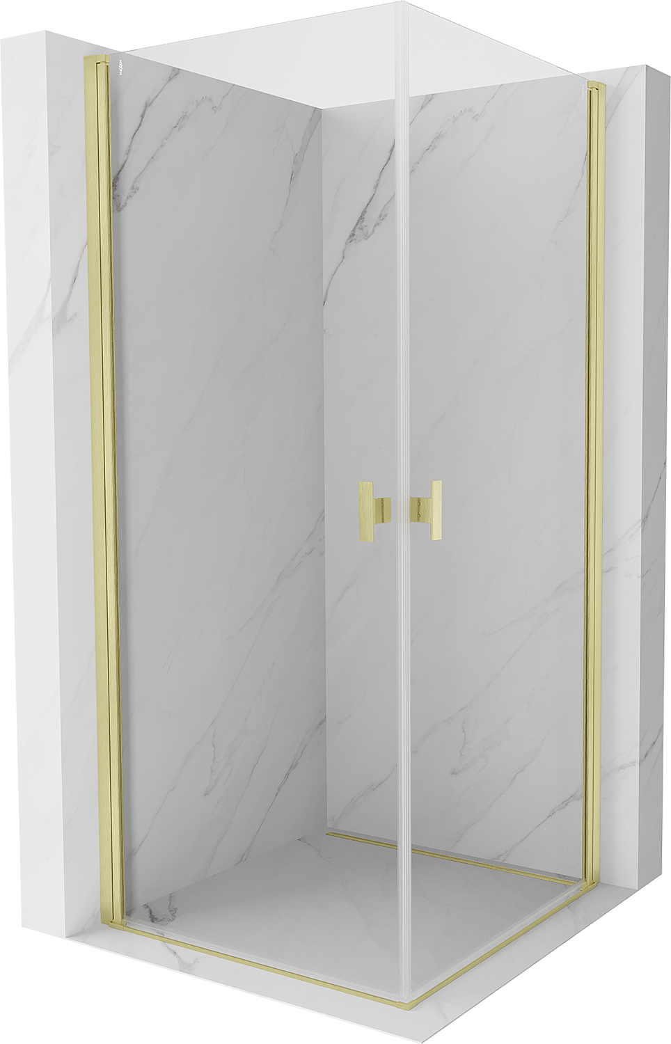 Mexen Mist-B Duo cabină de duș cu ușă rabatabilă 100 x 100 cm, transparentă, auriu periat - 8A2-100-100-55-00