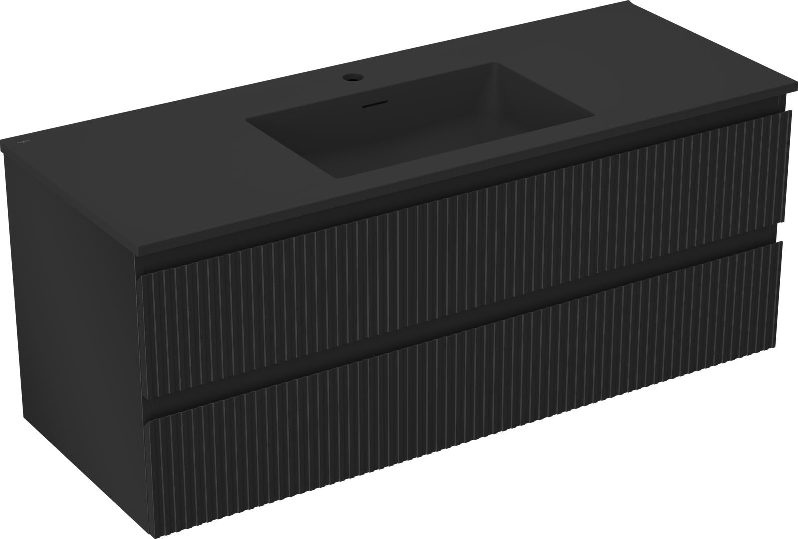 Mexen Rivel dulap baie 120 cm cu chiuvetă Otis, 2 sertare, riflat, negru mat - 91A20-12047-2-BFF71-W18M71