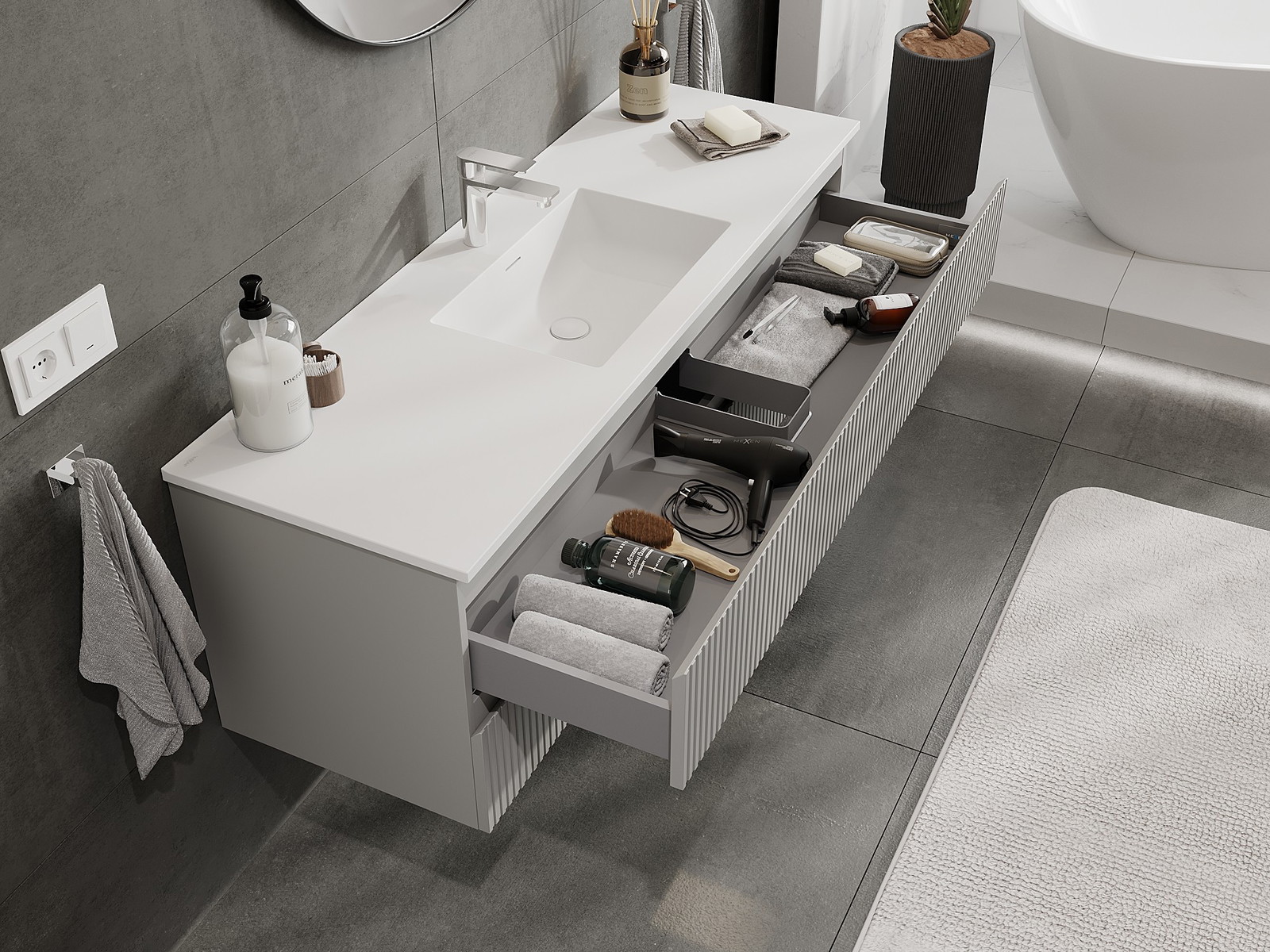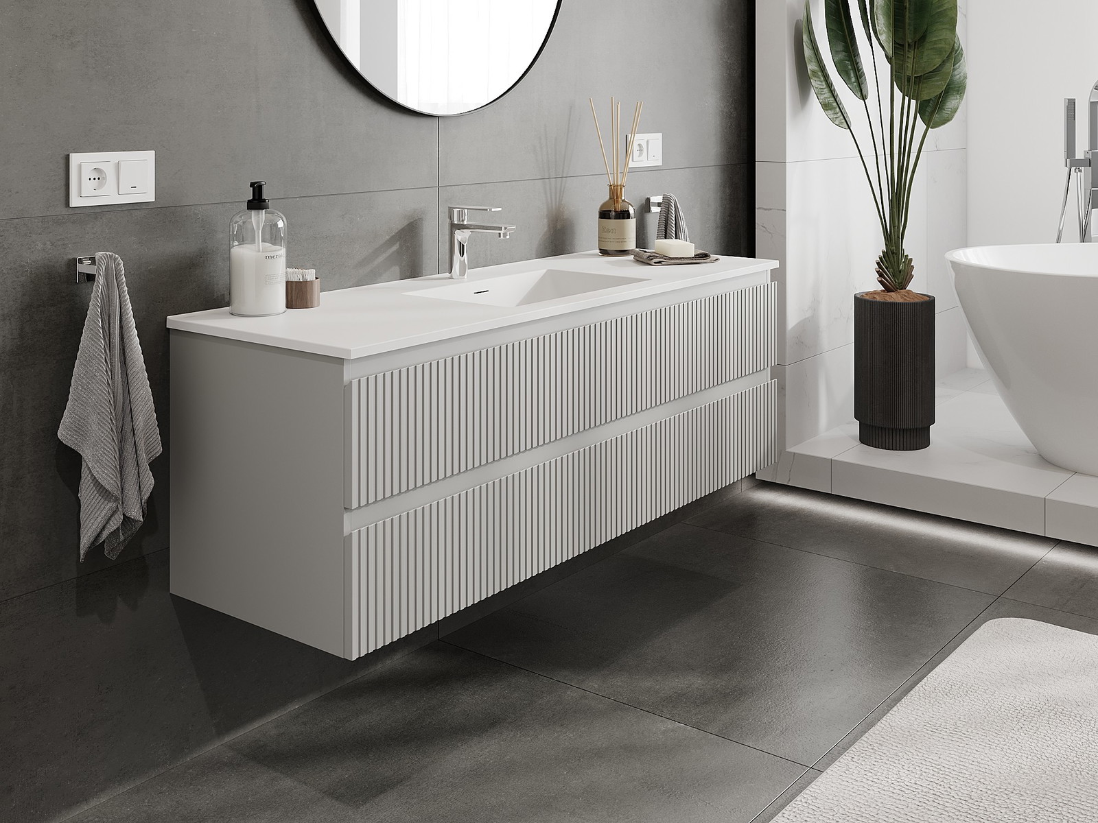 Mobilierul nostru modular pentru baie poate fi combinat în diverse configurații de culori, permițând personalizarea completă. Puteți alege atât aspectul, cât și funcțiile fiecărui element, ceea ce permite adaptarea mobilierului la preferințele dvs. stilistice și funcționale.