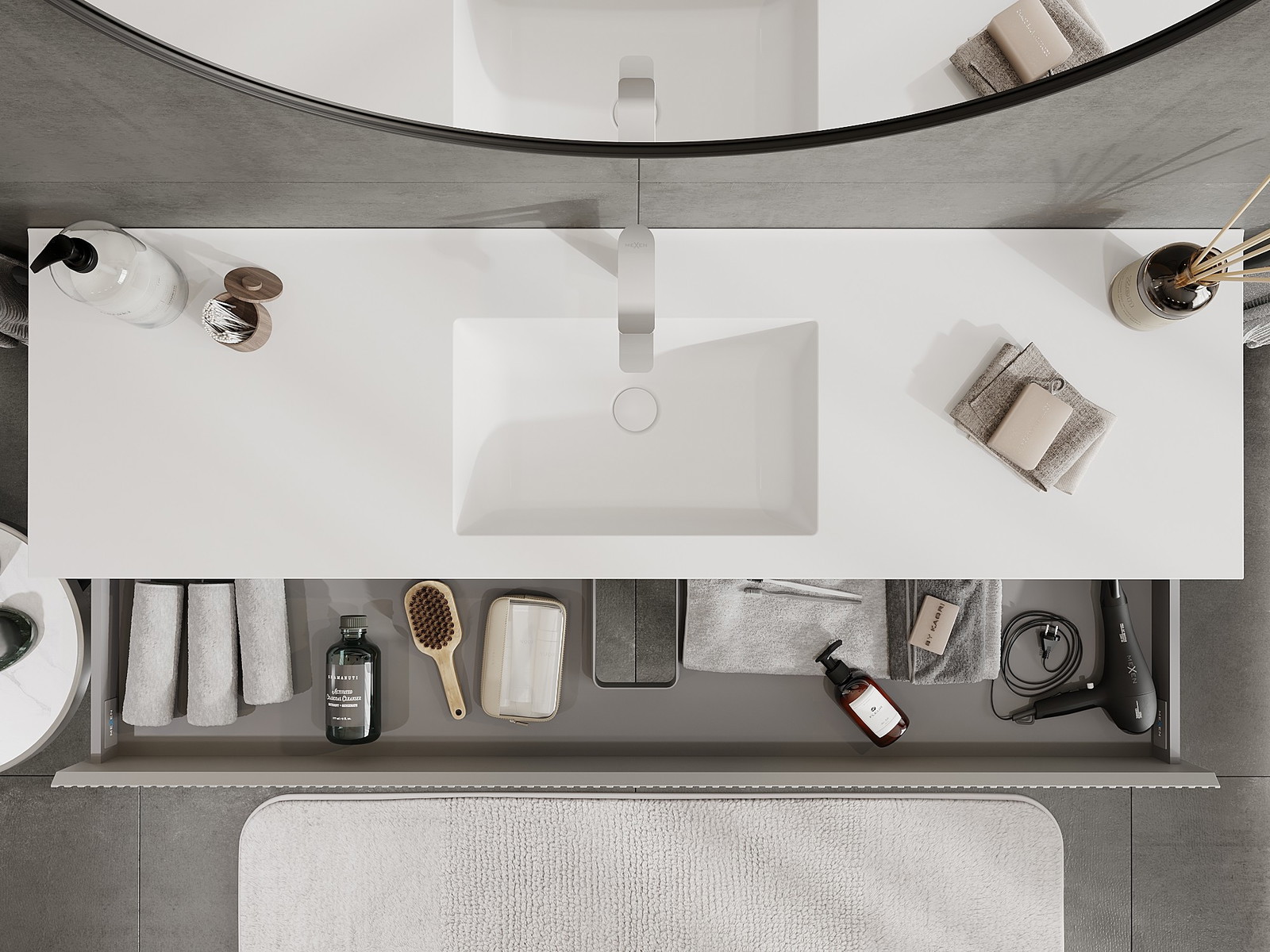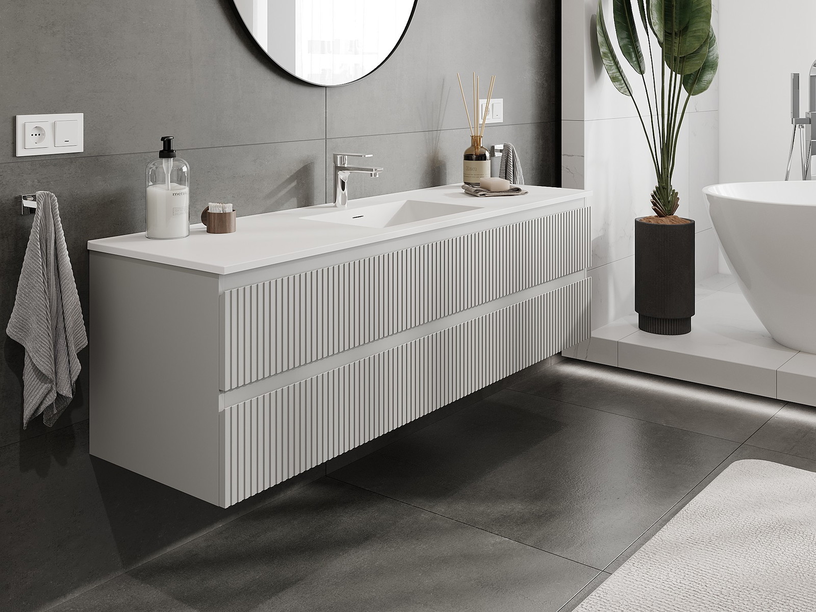 Mobilierul nostru modular pentru baie poate fi combinat în diverse configurații de culori, permițând personalizarea completă. Puteți alege atât aspectul, cât și funcțiile fiecărui element, ceea ce permite adaptarea mobilierului la preferințele dvs. stilistice și funcționale.