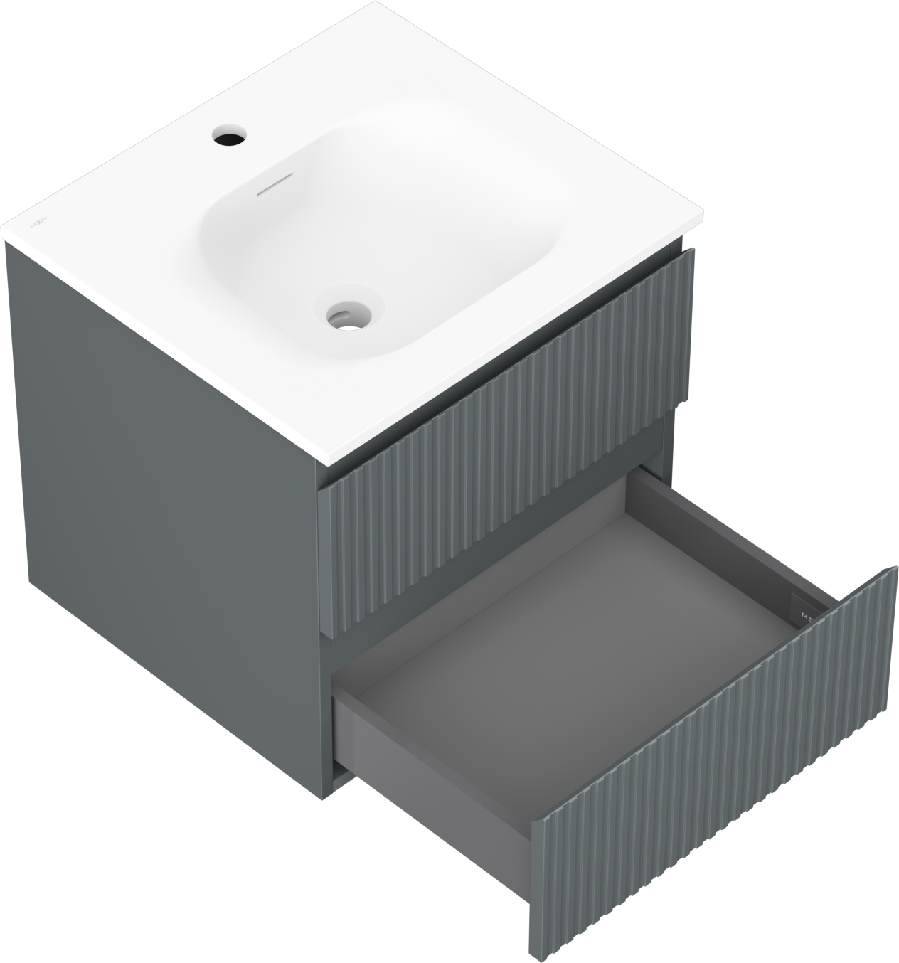 Decupajul în sertar este proiectat în așa fel încât să acomodeze sifonul, care este esențial în instalațiile de lavoare. Datorită acestui fapt, mobila poate fi montată complet funcțională, fără a fi necesară renunțarea la spațiul din sertar în favoarea instalației.