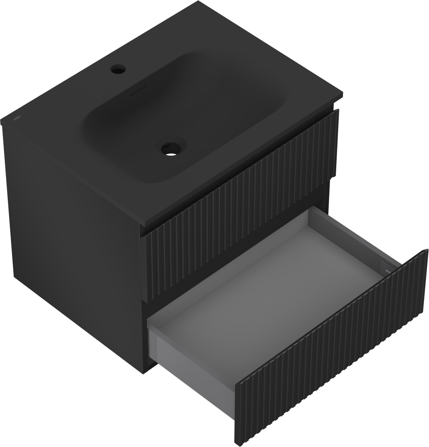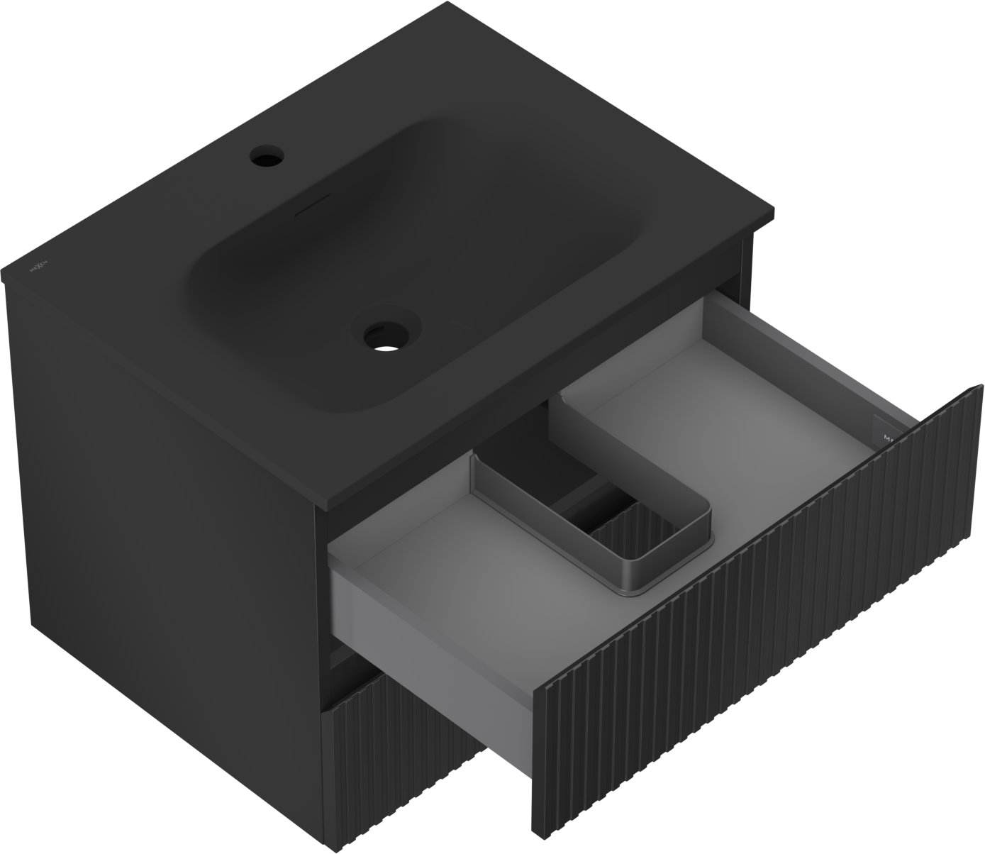 Decupajul în sertar este proiectat în așa fel încât să acomodeze sifonul, care este esențial în instalațiile de lavoare. Datorită acestui fapt, mobila poate fi montată complet funcțională, fără a fi necesară renunțarea la spațiul din sertar în favoarea instalației.