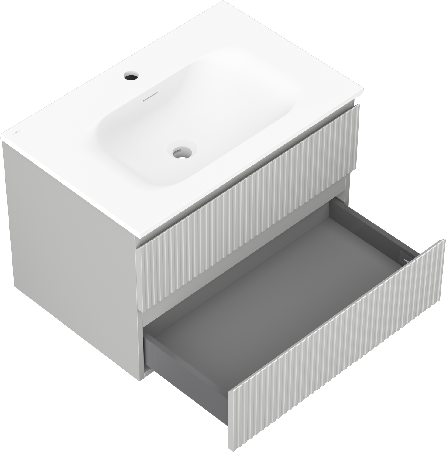 Decupajul în sertar este proiectat în așa fel încât să acomodeze sifonul, care este esențial în instalațiile de lavoare. Datorită acestui fapt, mobila poate fi montată complet funcțională, fără a fi necesară renunțarea la spațiul din sertar în favoarea instalației.