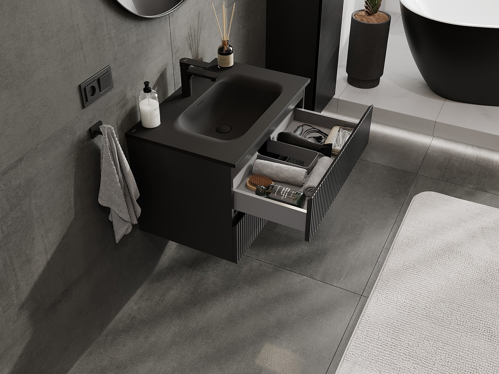 Corpul dulapului este livrat complet asamblat, ceea ce înseamnă confort maxim și economie de timp. Nu trebuie să pierzi ore întregi asamblând mobilierul – este suficient să îl montezi în locul ales din baie. Aceasta este soluția ideală pentru persoanele care prețuiesc montajul rapid și efectul imediat.