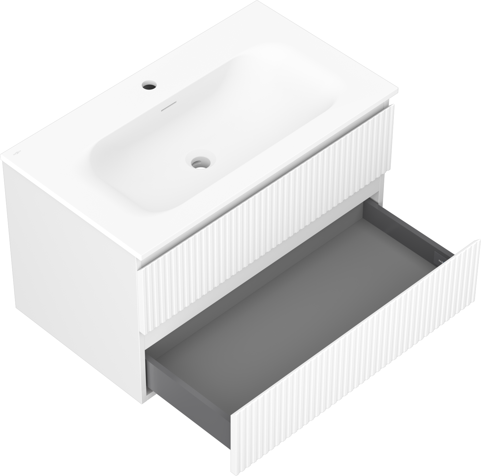 Decupajul în sertar este proiectat în așa fel încât să acomodeze sifonul, care este esențial în instalațiile de lavoare. Datorită acestui fapt, mobila poate fi montată complet funcțională, fără a fi necesară renunțarea la spațiul din sertar în favoarea instalației.