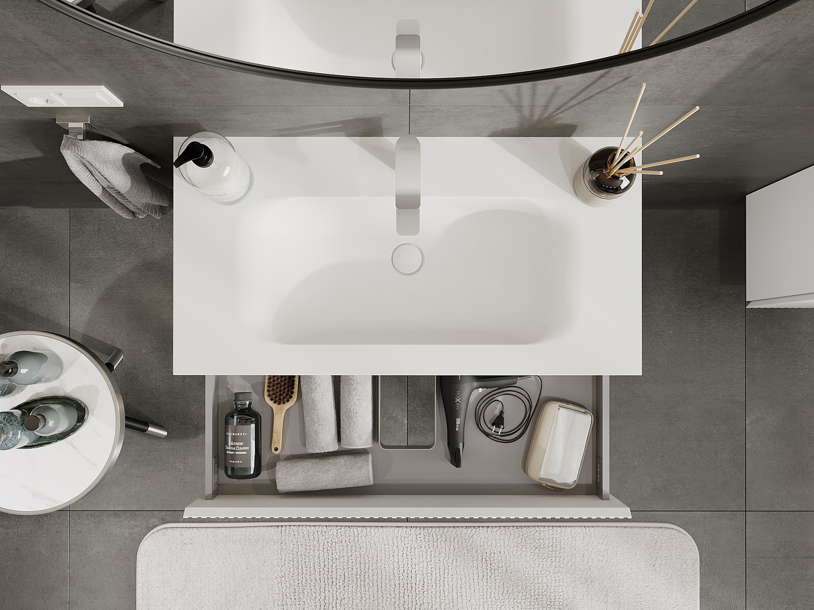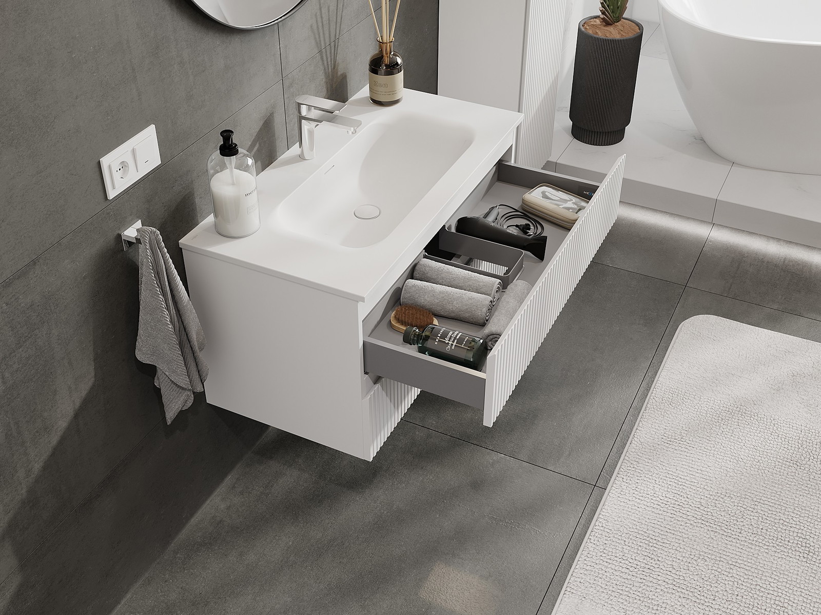 Mobilierul nostru modular pentru baie poate fi combinat în diverse configurații de culori, permițând personalizarea completă. Puteți alege atât aspectul, cât și funcțiile fiecărui element, ceea ce permite adaptarea mobilierului la preferințele dvs. stilistice și funcționale.