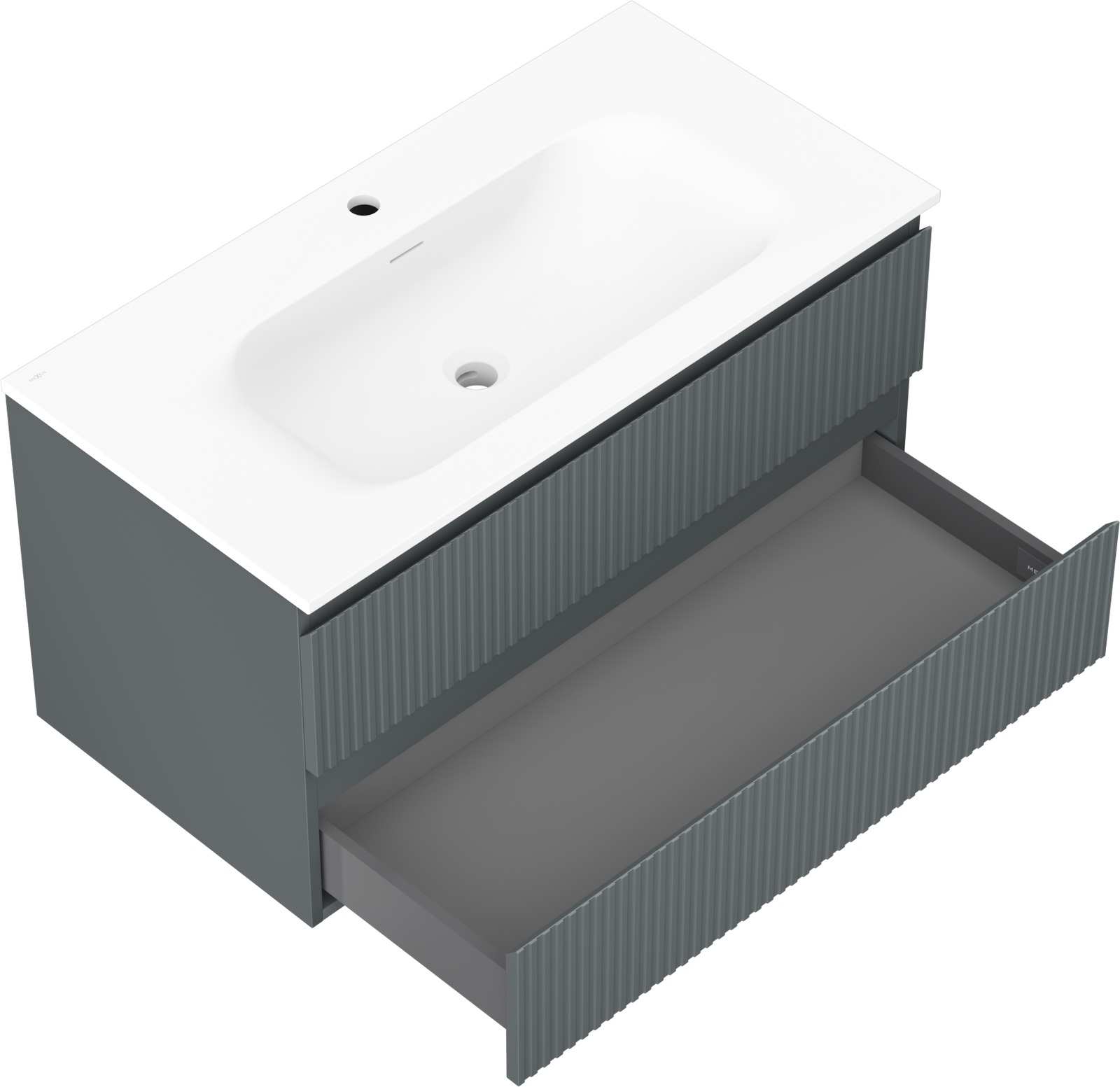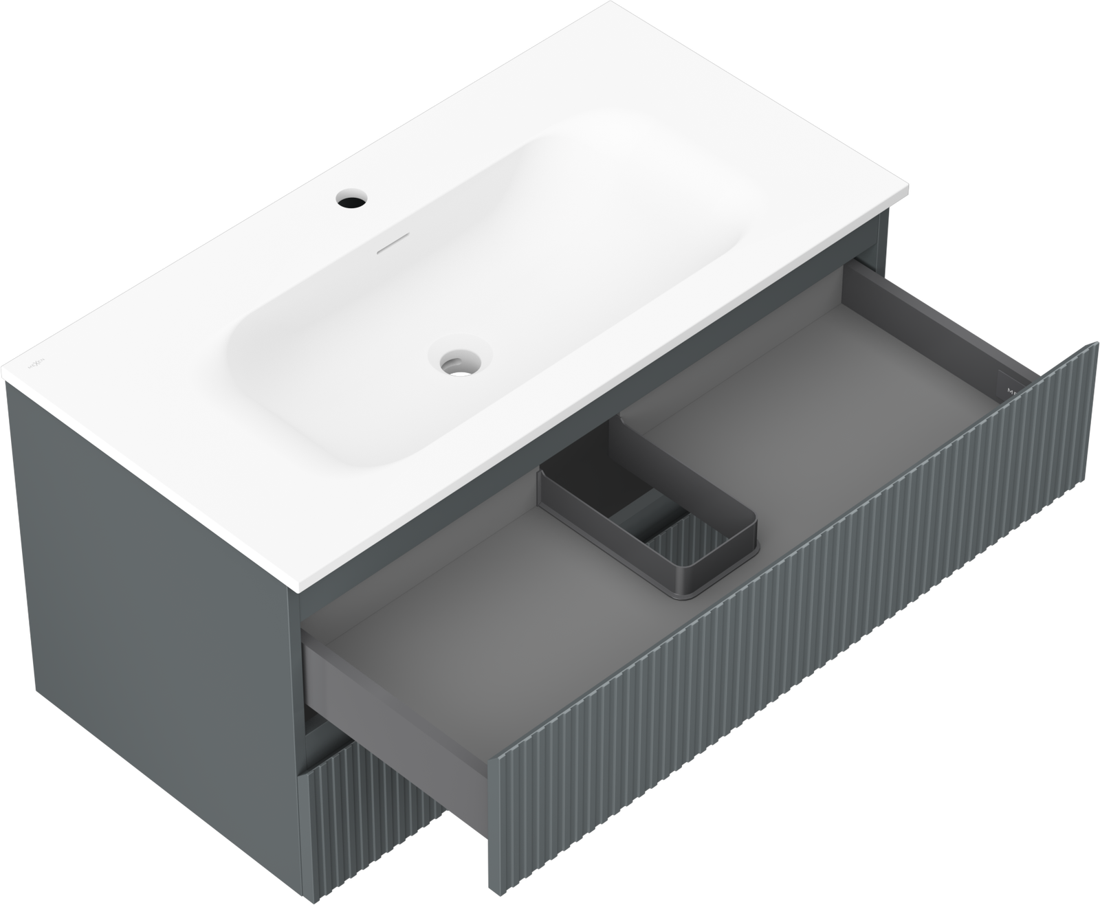 Decupajul în sertar este proiectat în așa fel încât să acomodeze sifonul, care este esențial în instalațiile de lavoare. Datorită acestui fapt, mobila poate fi montată complet funcțională, fără a fi necesară renunțarea la spațiul din sertar în favoarea instalației.