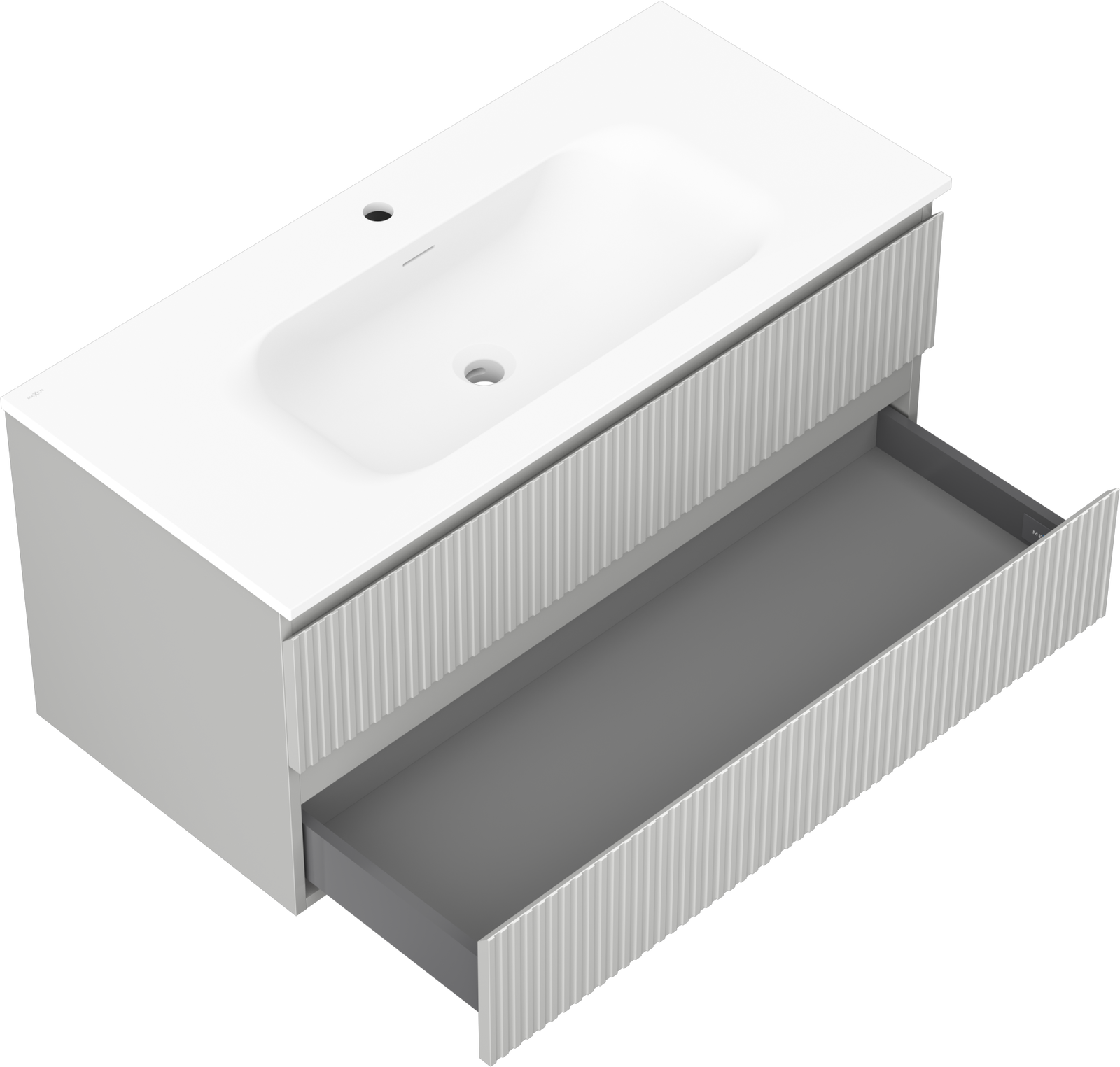 Decupajul în sertar este proiectat în așa fel încât să acomodeze sifonul, care este esențial în instalațiile de lavoare. Datorită acestui fapt, mobila poate fi montată complet funcțională, fără a fi necesară renunțarea la spațiul din sertar în favoarea instalației.