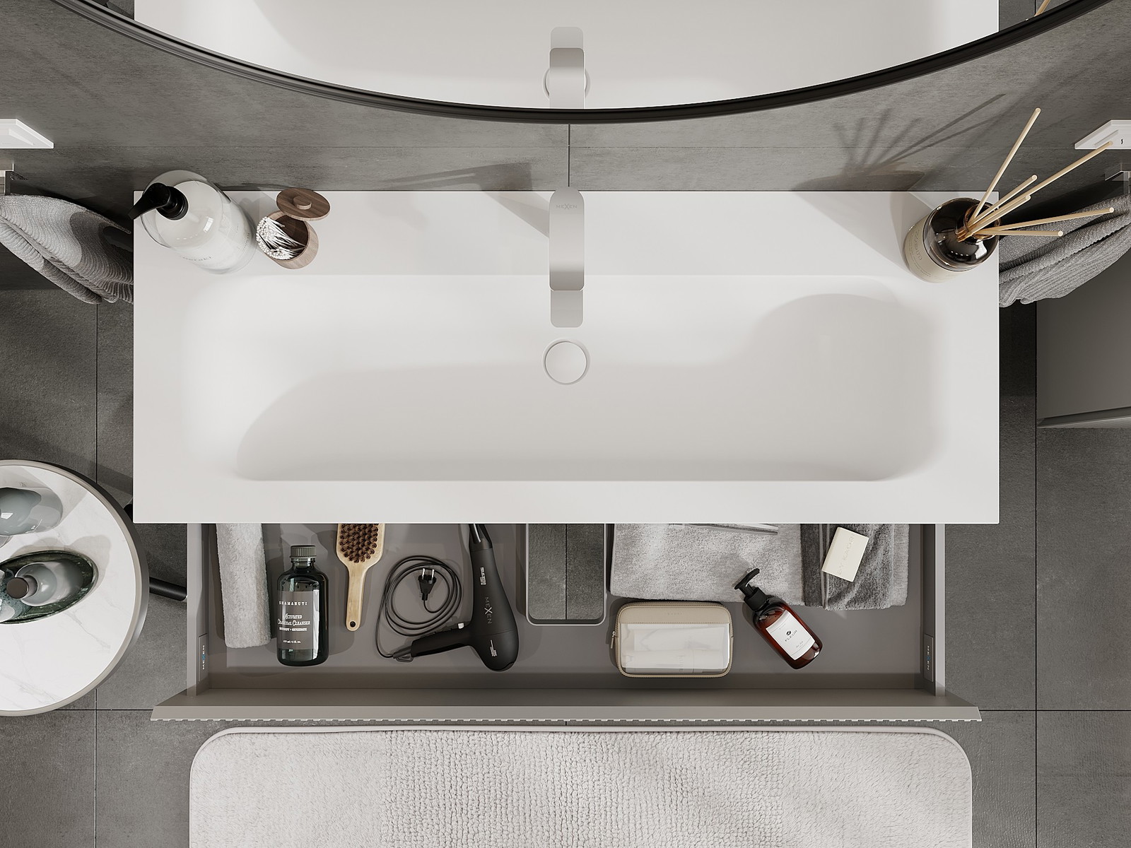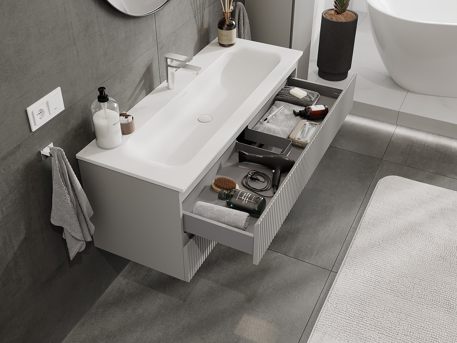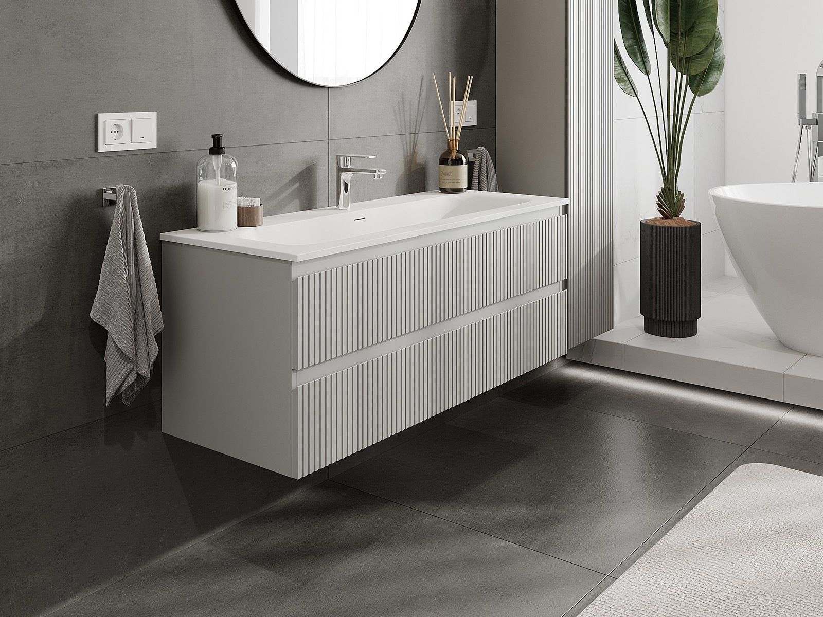 Mobilierul nostru modular pentru baie poate fi combinat în diverse configurații de culori, permițând personalizarea completă. Puteți alege atât aspectul, cât și funcțiile fiecărui element, ceea ce permite adaptarea mobilierului la preferințele dvs. stilistice și funcționale.