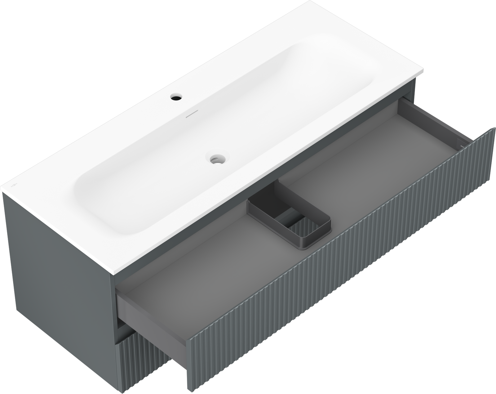 Decupajul în sertar este proiectat în așa fel încât să acomodeze sifonul, care este esențial în instalațiile de lavoare. Datorită acestui fapt, mobila poate fi montată complet funcțională, fără a fi necesară renunțarea la spațiul din sertar în favoarea instalației.