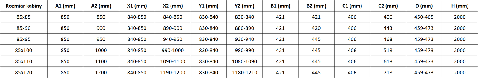 Grosime sticlă: 8 mm