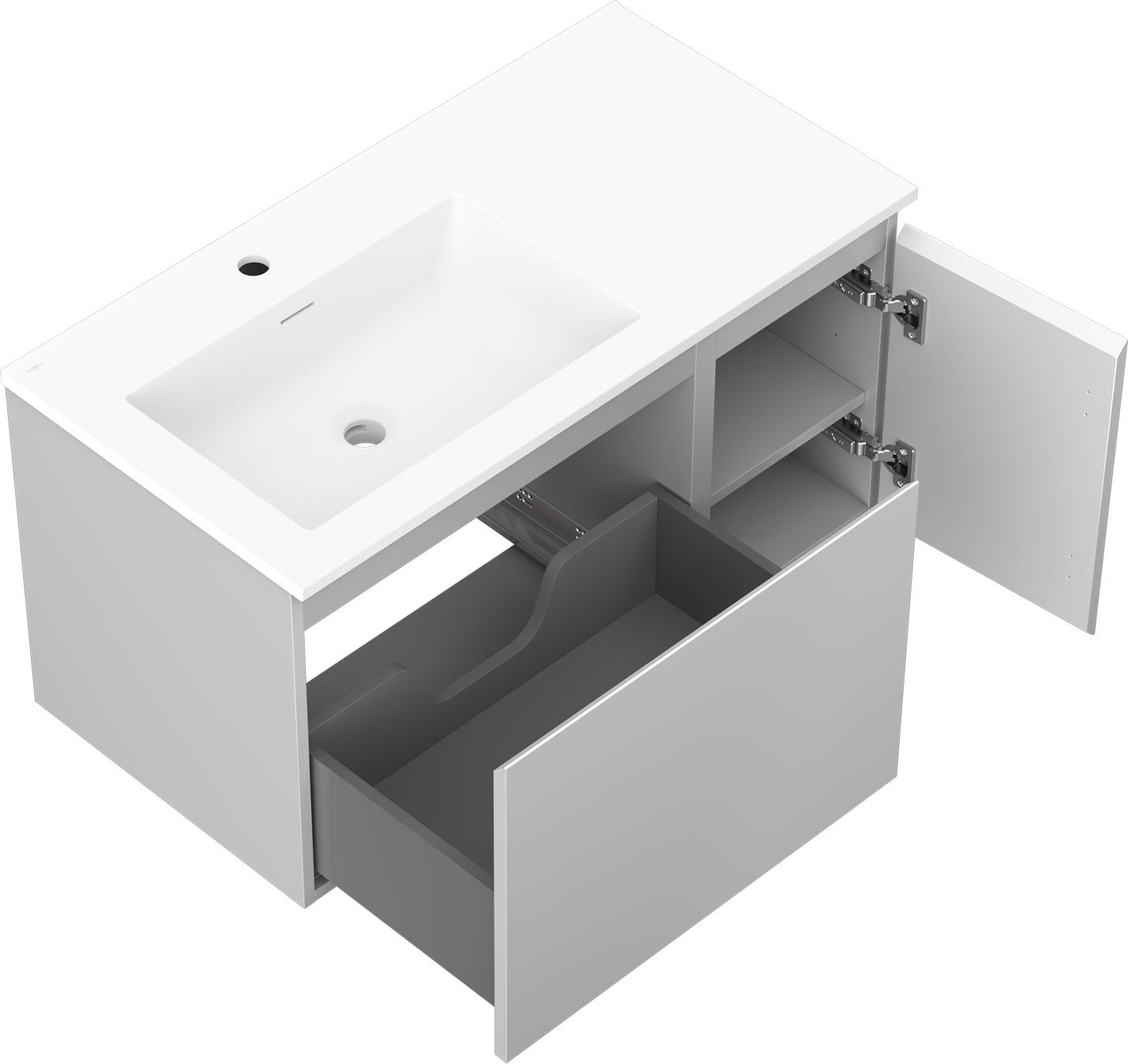 Mexen Orio dulap baie 90 cm cu lavoar Otis stânga, 1S, 1D, gri mat/alb mat - 91A13-09047-3-BBFF62-W18L01