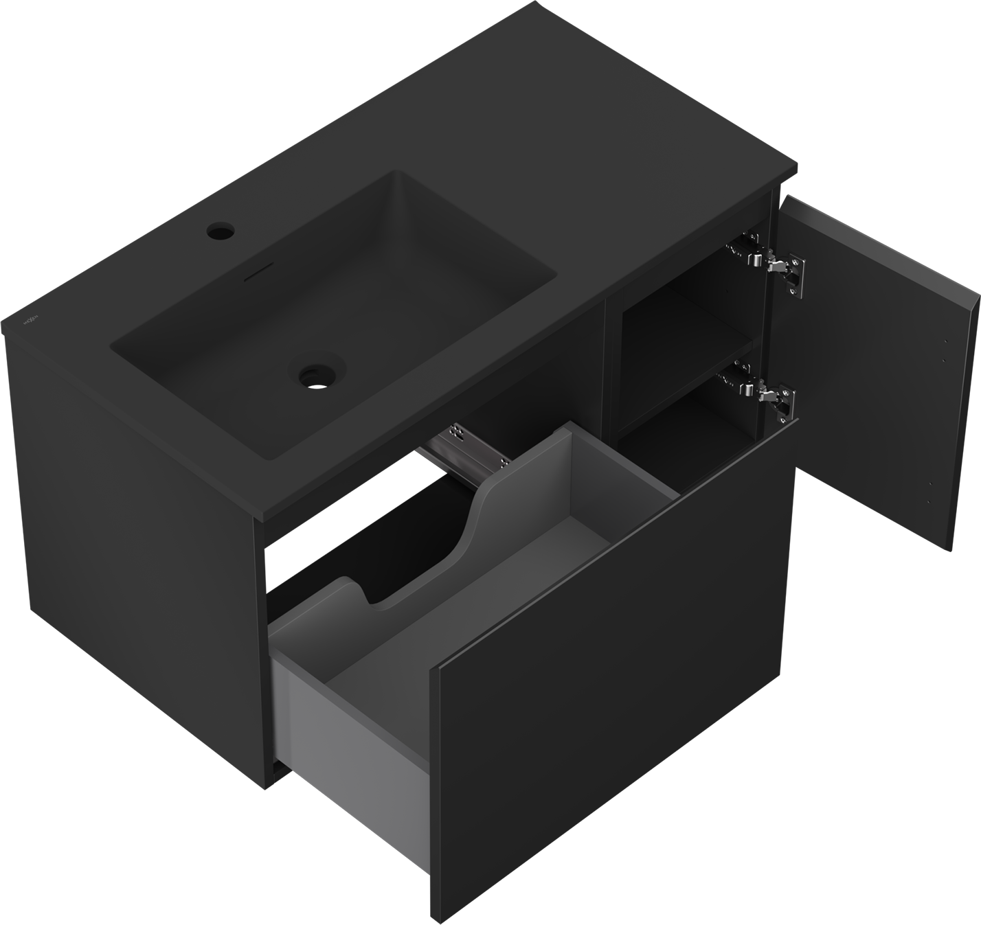 Mexen Orio dulap de baie 90 cm cu lavoar Otis stânga, 1S, 1D, negru mat - 91A13-09047-3-BBFF71-W18L71