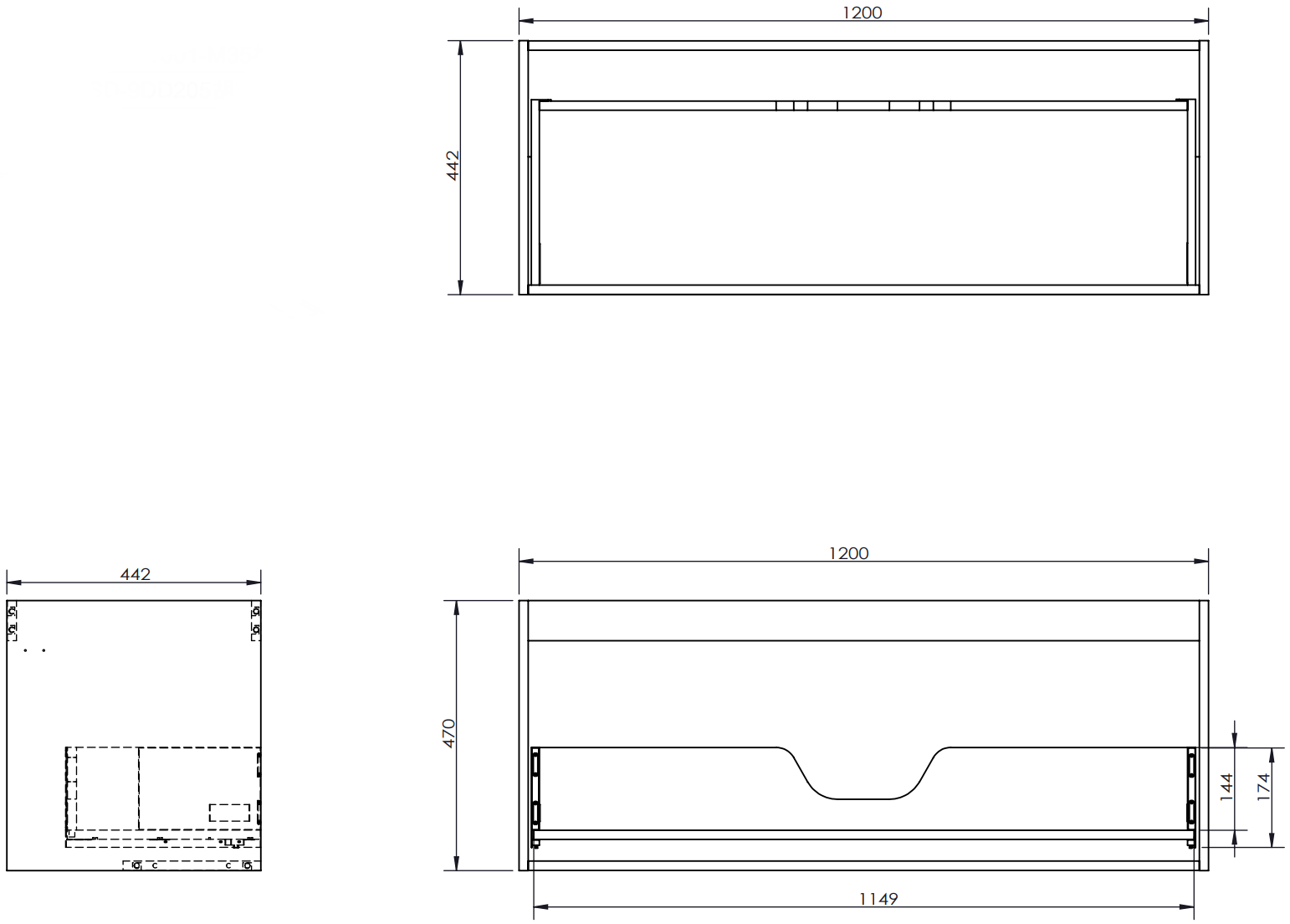 Decupajul în sertar este proiectat în așa fel încât să acomodeze sifonul, care este esențial în instalațiile de lavoare. Datorită acestui fapt, mobila poate fi montată complet funcțională, fără a fi necesară renunțarea la spațiul din sertar în favoarea instalației.