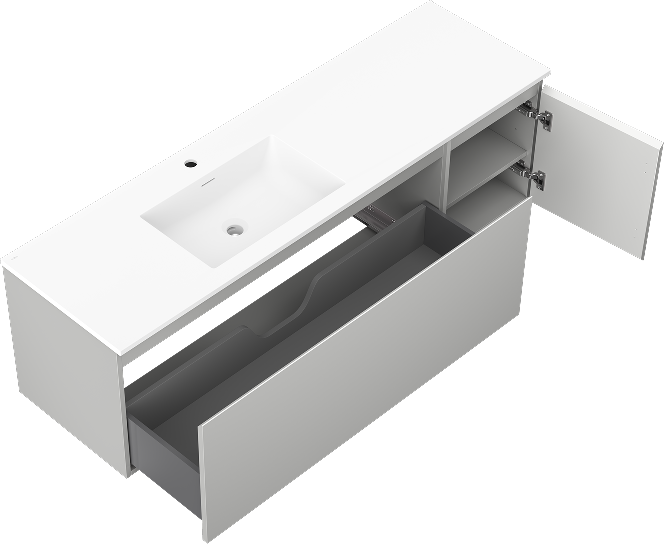 Mexen Orio dulap baie 160 cm cu lavoar Otis stânga, 1S, 1D, gri mat/alb mat - 91A13-16047-3-BBFF62-W18L01