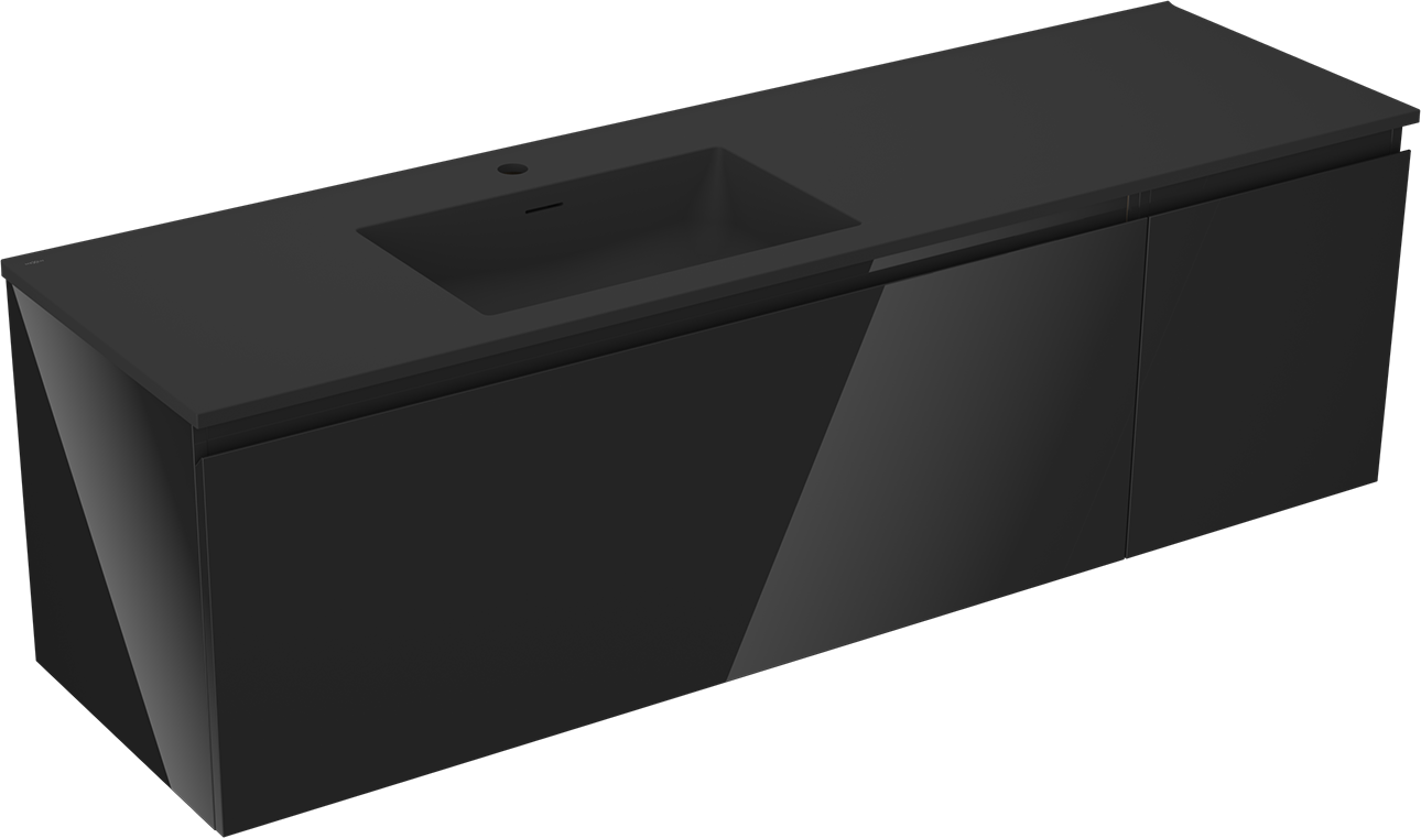 Mexen Orio dulap de baie 160 cm cu lavoar Otis stânga, 1S, 1D, negru lucios/negru mat - 91A13-16047-3-BBFF70-W18L71